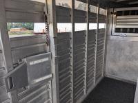 7 ft wide, over neck storage, (2) saddle holders, tack hooks, (2) position center divider with sliding door, full swing rear door with sliding door, right side man door, 2-5/6 inch ball, 7000 lb axles, new Hoof Grip rubber livestock floor, new 235/80R16 tires