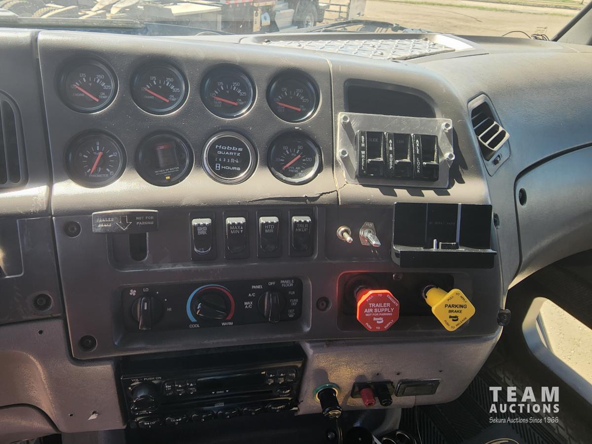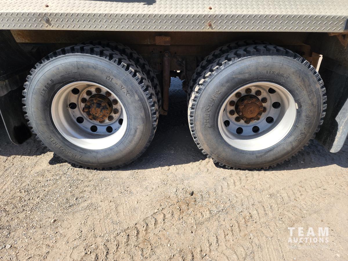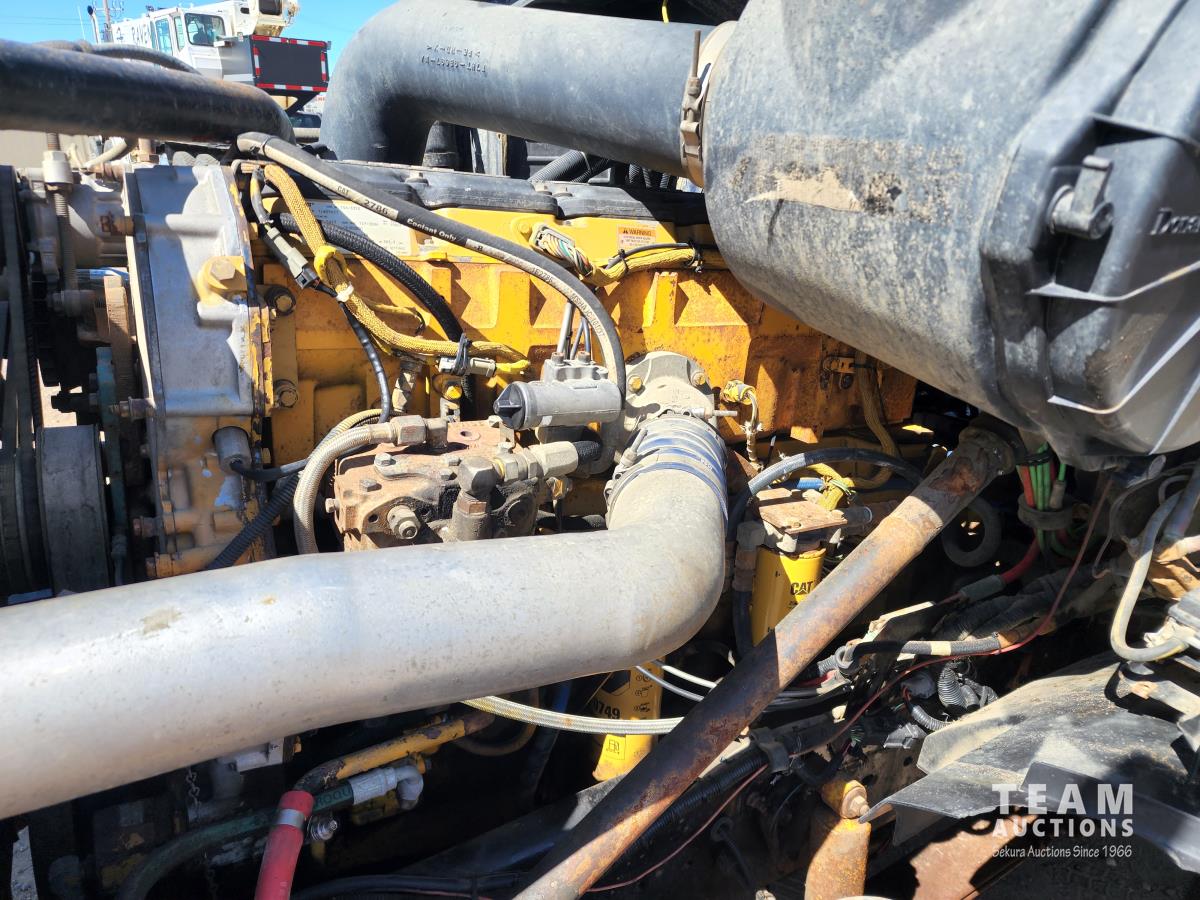 CAT 3406 engine, 13 speed transmission, air ride suspension, 24,000 lb front, 53,000 lb rears, single axle lock, 14 ft box, manual tarp, a/c, P/W, P/L, 11R22.5 inch tires on aluminum rims