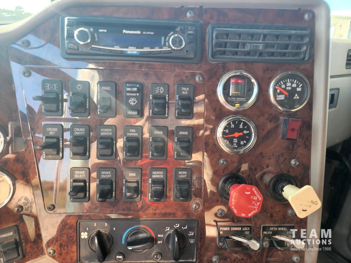 Cummins 435 HP engine, 13 speed transmission, 40,000 lb rears, air ride suspension, Webasto heater, sliding 5TH wheel, 11R22.5 inch tires on aluminum rims
