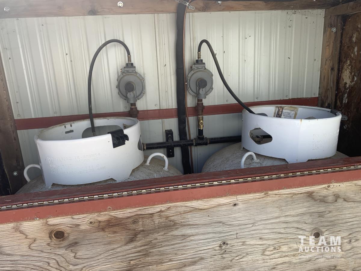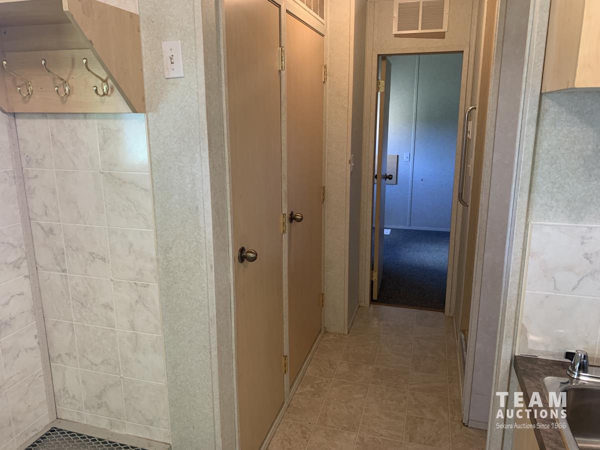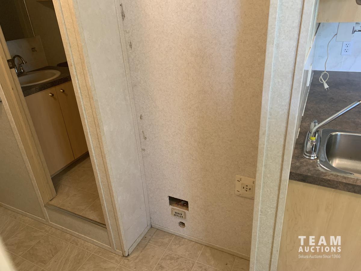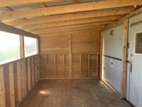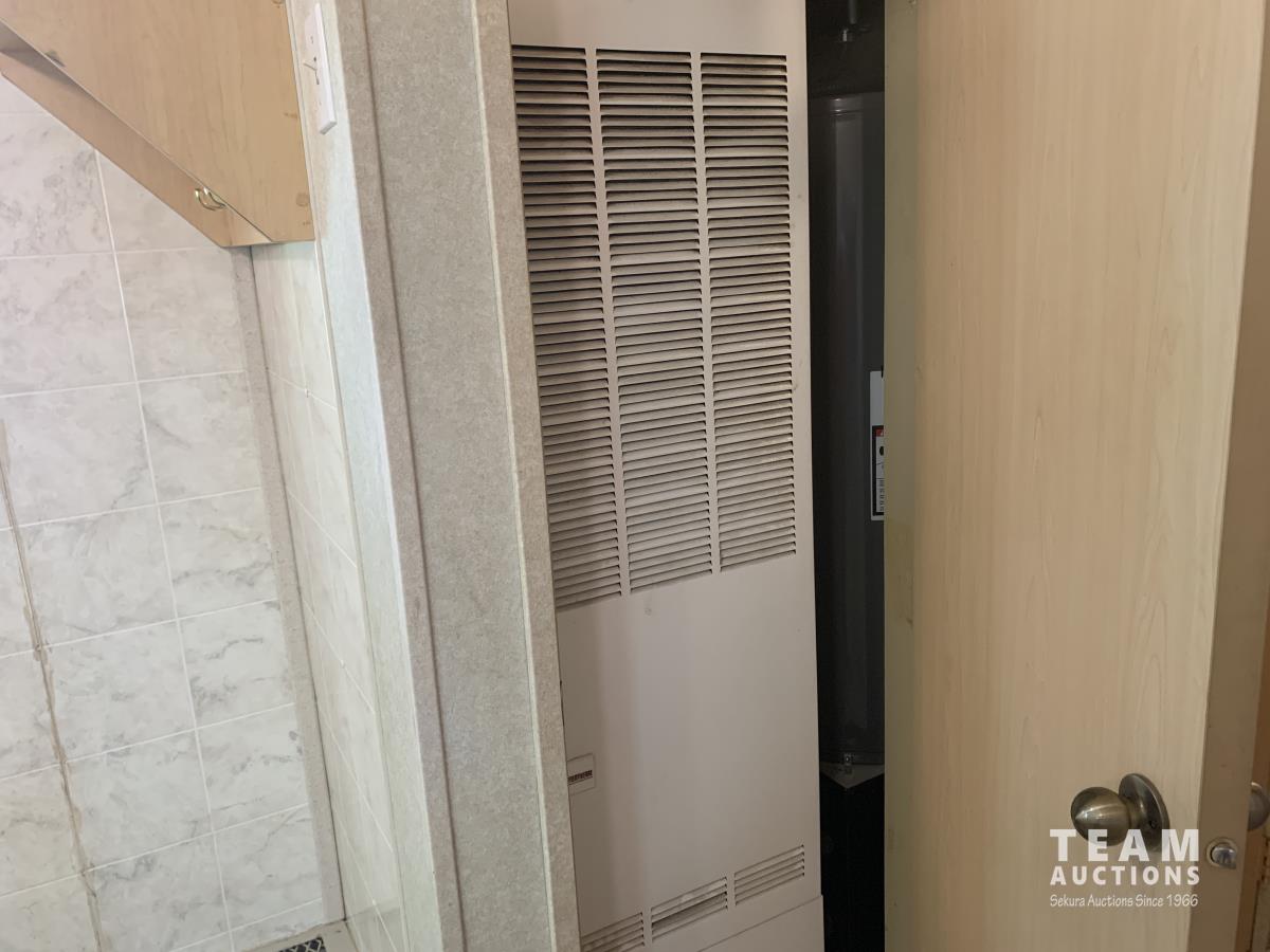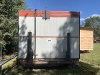 kitchen, bathroom, bedroom, one entrance, 2 inch x 6 inch walls, (2) 420 lb propane pigs, working air condition, 250 gallon vertical water storage, completely independent water system, built in vacuum, 178 liter hot water tank, Intertherm furnace, 10 ft x 18 ft unfinished porch addition 2 inch x 4 inch walls, approximately 100 ft of heavy duty electrical cord for direct wiring, plumbed for direct hook up