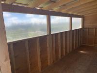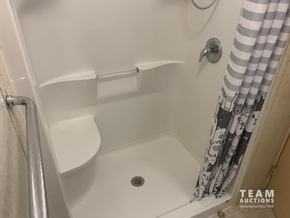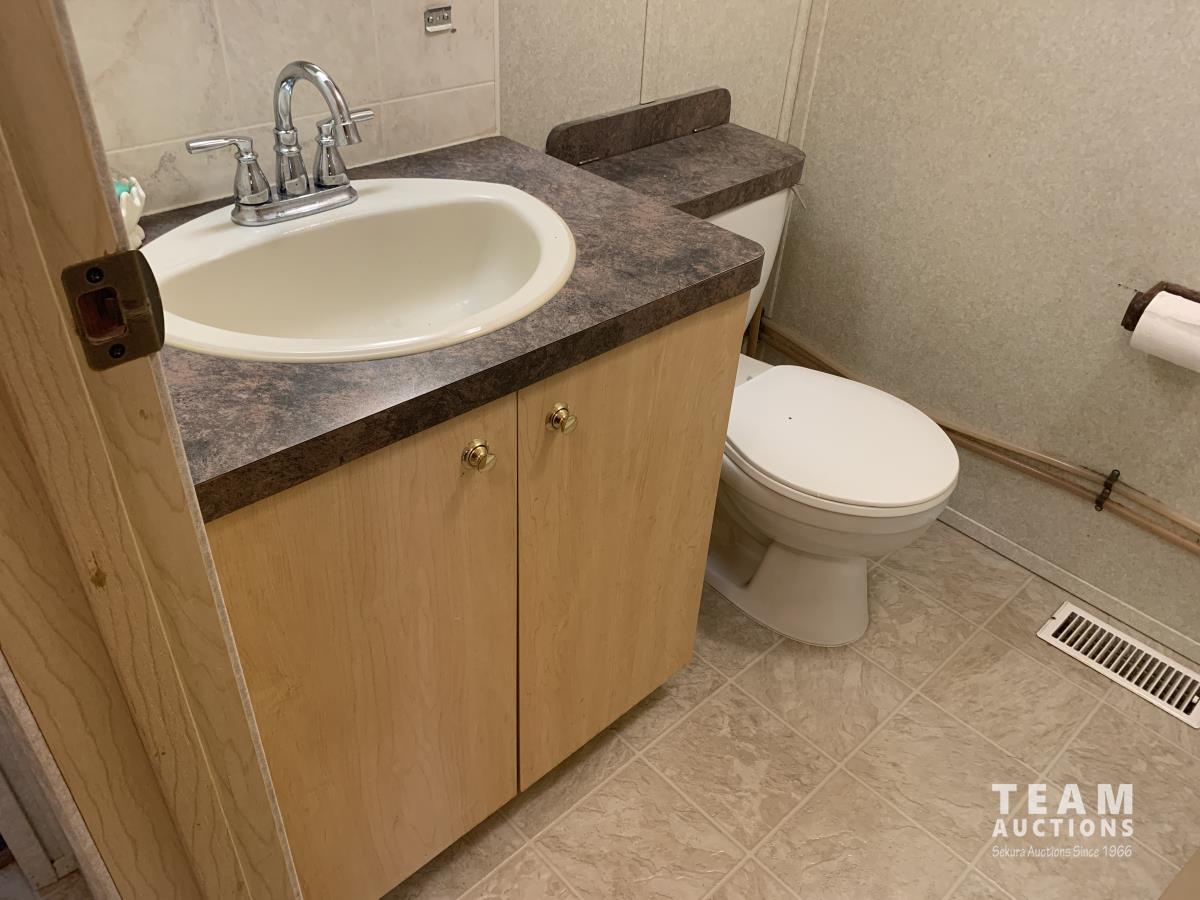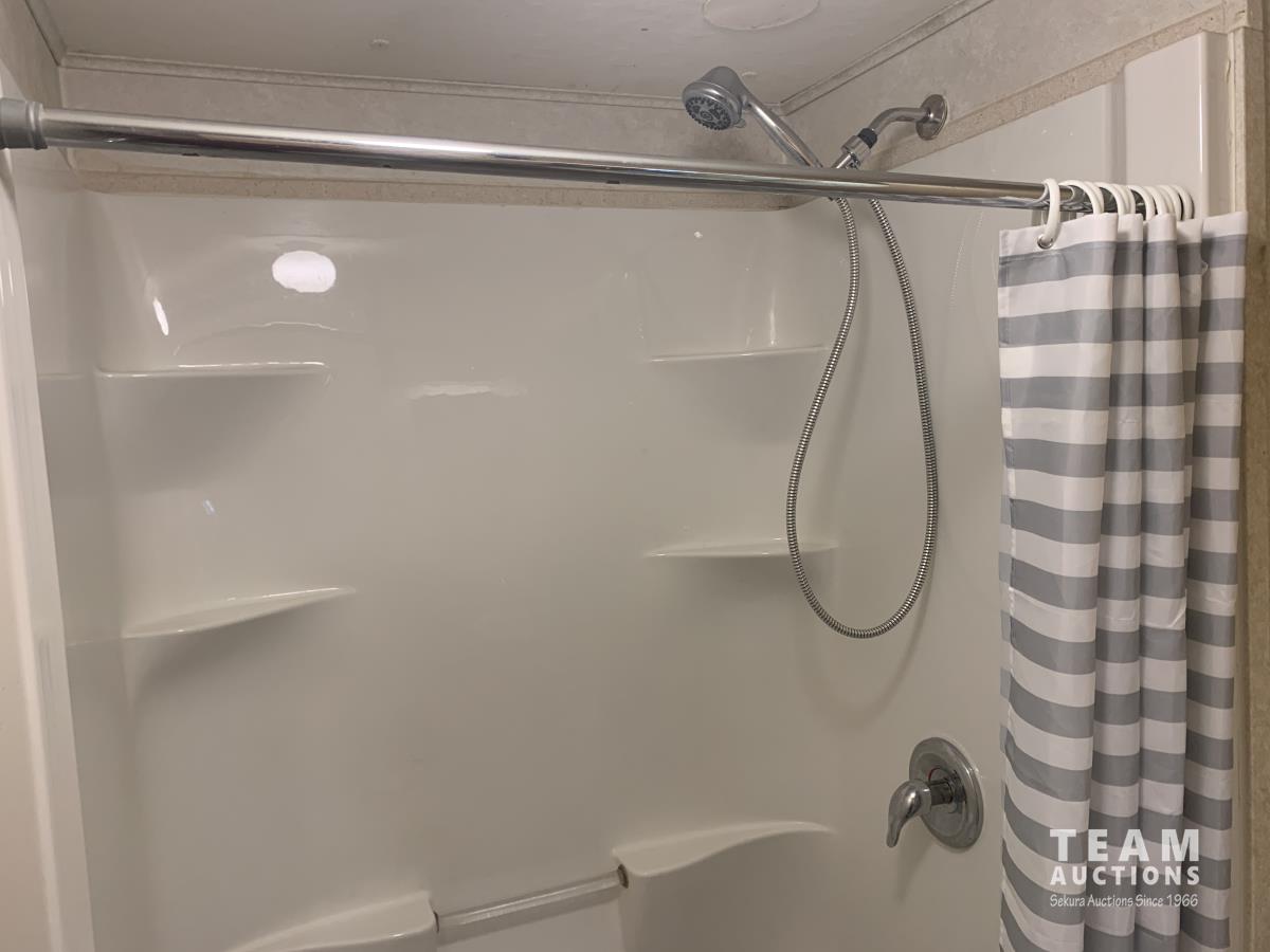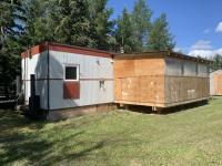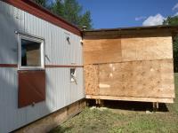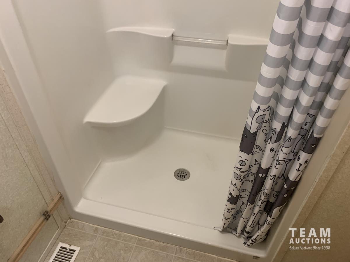 kitchen, bathroom, bedroom, one entrance, 2 inch x 6 inch walls, (2) 420 lb propane pigs, working air condition, 250 gallon vertical water storage, completely independent water system, built in vacuum, 178 liter hot water tank, Intertherm furnace, 10 ft x 18 ft unfinished porch addition 2 inch x 4 inch walls, approximately 100 ft of heavy duty electrical cord for direct wiring, plumbed for direct hook up