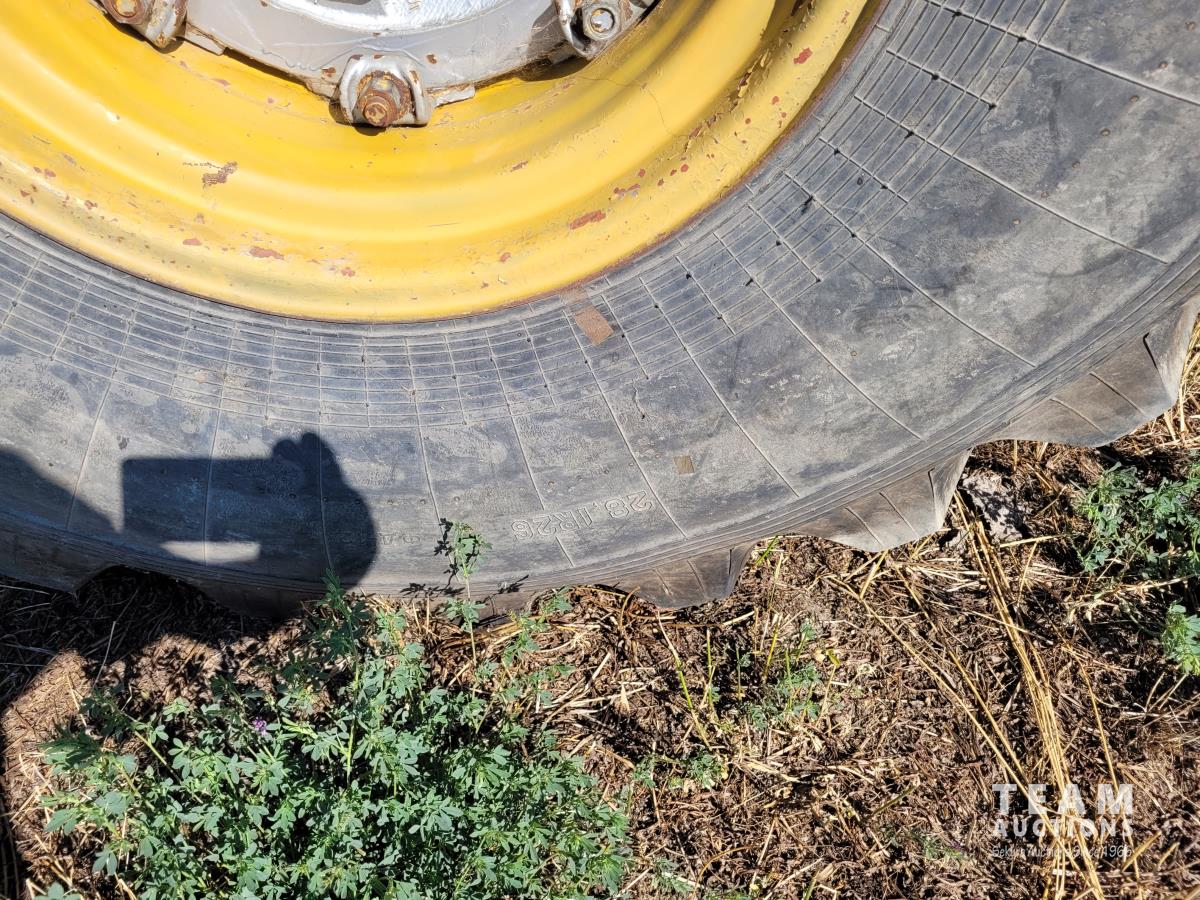 V8 diesel engine, 28.1R26 rubber singles, 3 hydraulic outlets