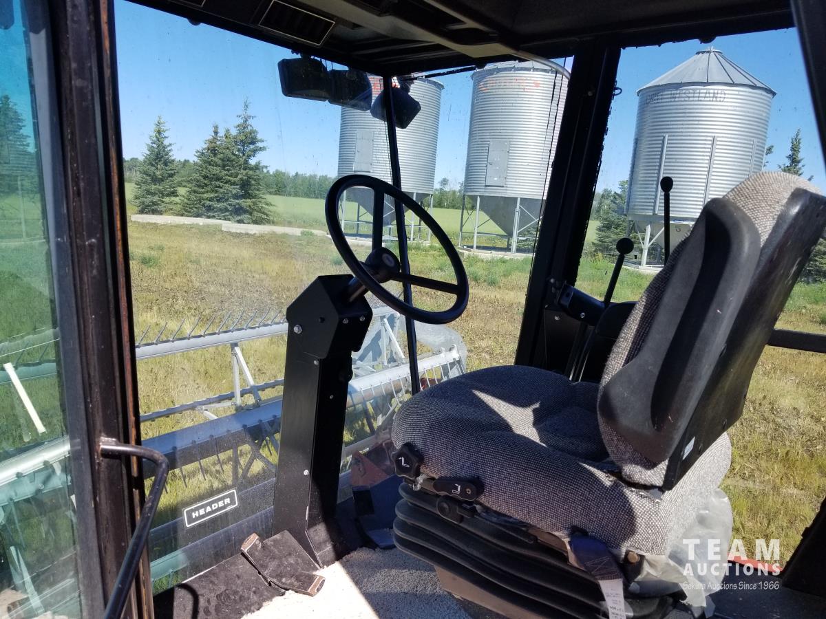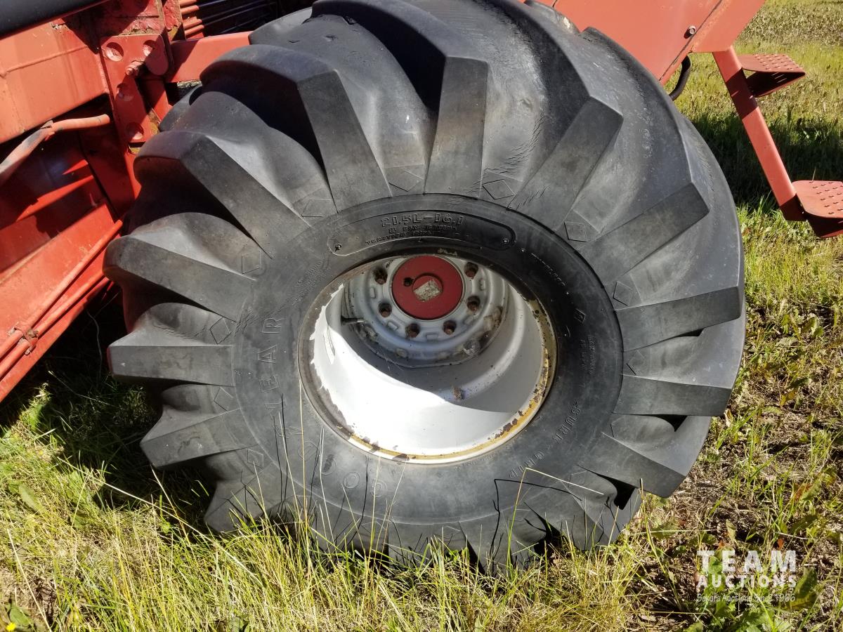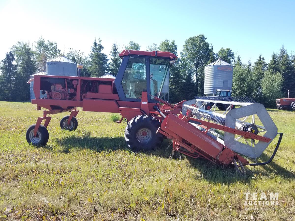 4 cylinder diesel engine, cab, air, pickup reel, double swath, 50% 21.5L-16.1 drive tires, 60% 7.60-15 casters