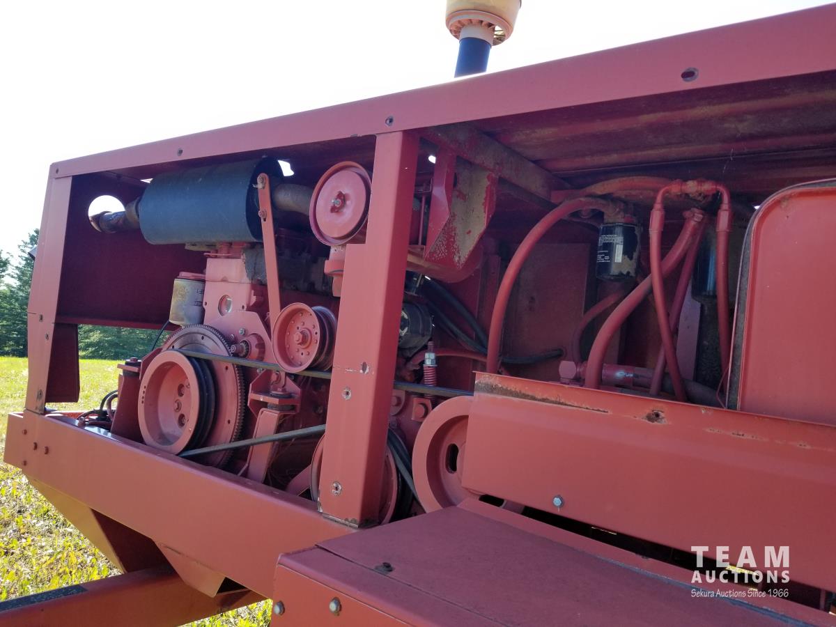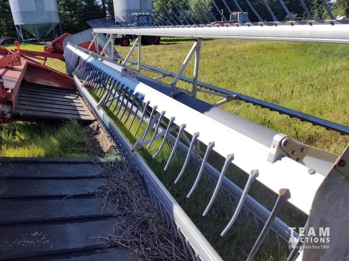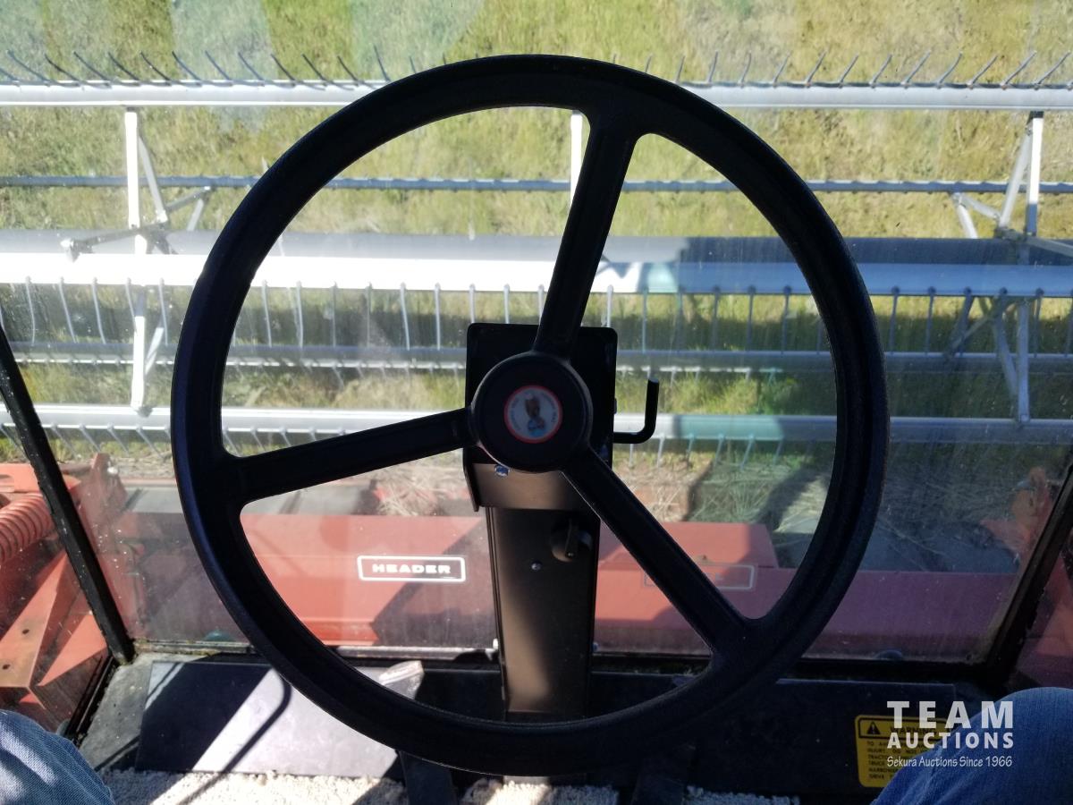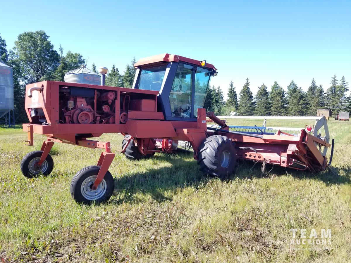 4 cylinder diesel engine, cab, air, pickup reel, double swath, 50% 21.5L-16.1 drive tires, 60% 7.60-15 casters