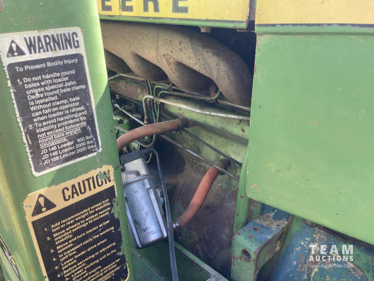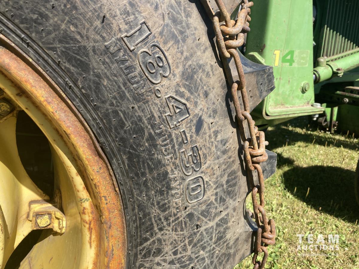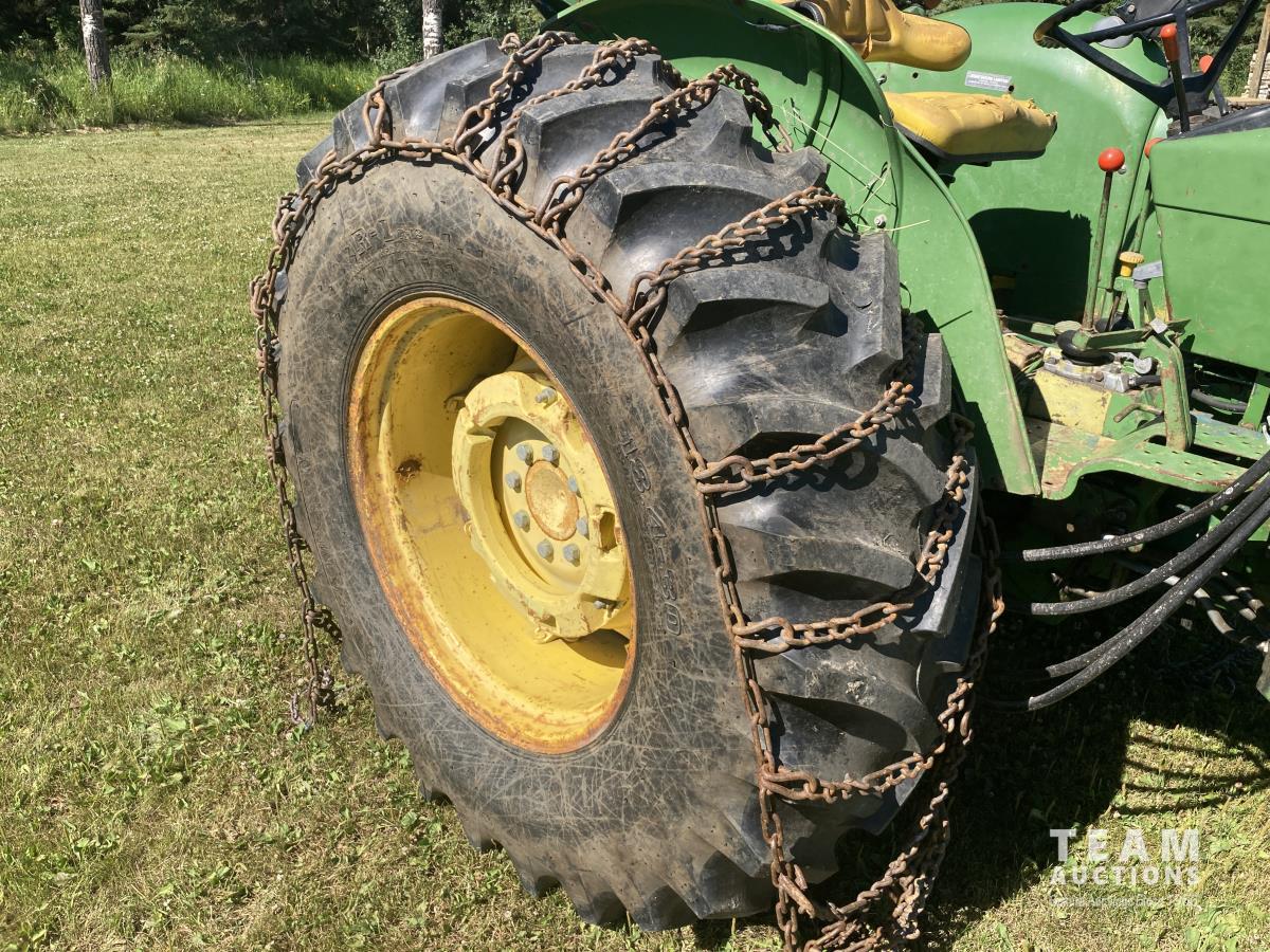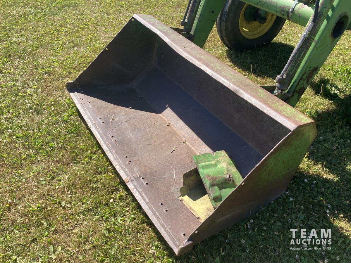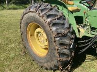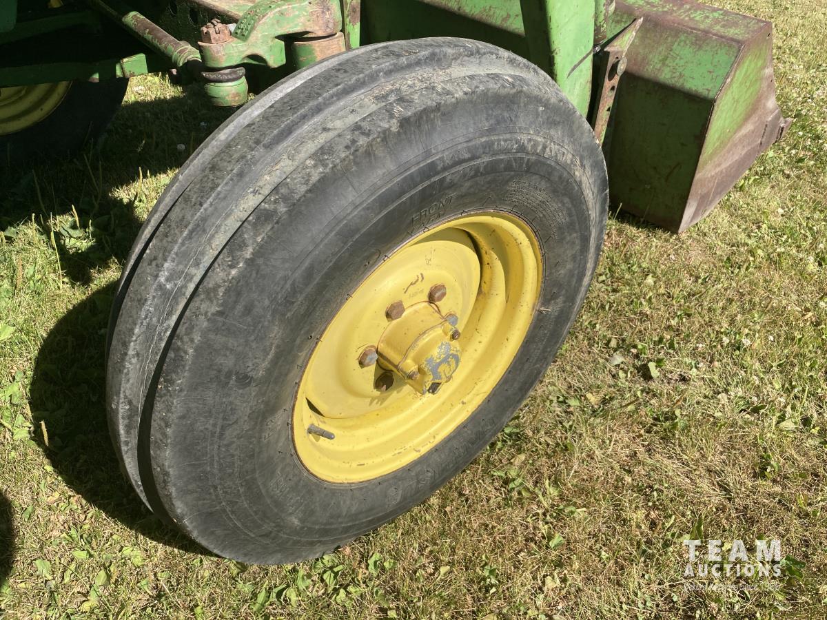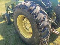 John Deere 148 front end loader, 60 inch bucket, 3 PT, 540 PTO, tire chains, 7.50-16SL front tires, 18.4-30 rear tires