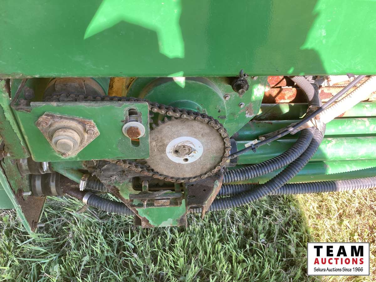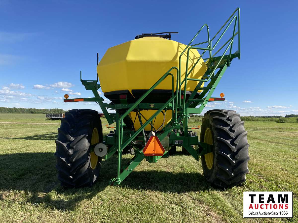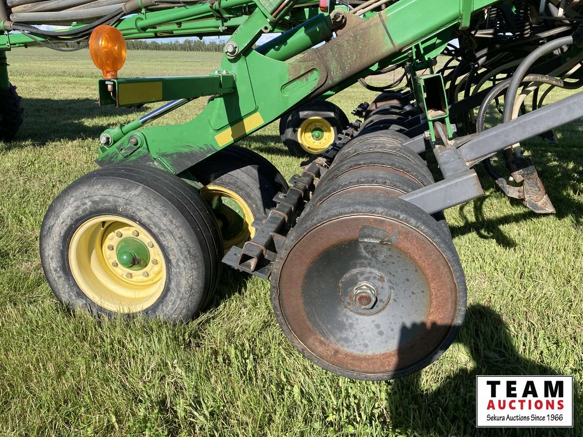 3 tank 430 bushel 1910 ground drive cart, 12 inch spacing, double shoot, single fan, carbide tips, dual band opener, 5-1/2 inch packer width, variable feed, black blue and green seed rollers on cart, John Deere Greenstar display screen, 11 L -15FI cultivator tires, 16.5 L -16 cart fronts, 710/70R38 cart rears