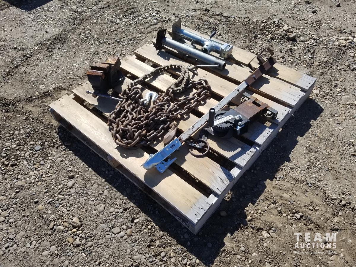54 Miscellaneous Chains, Trailer Jacks, Hitches & Bench Vise