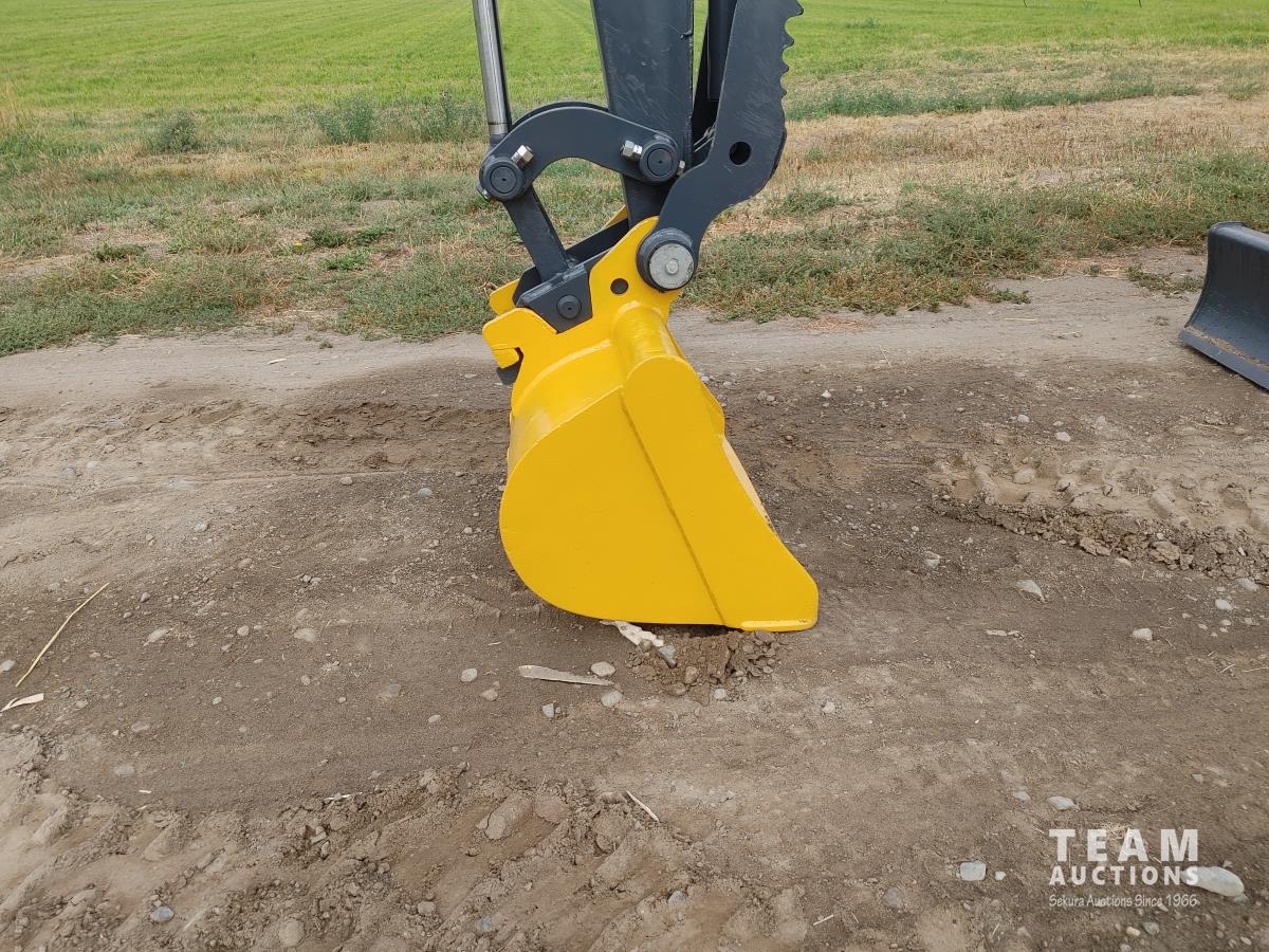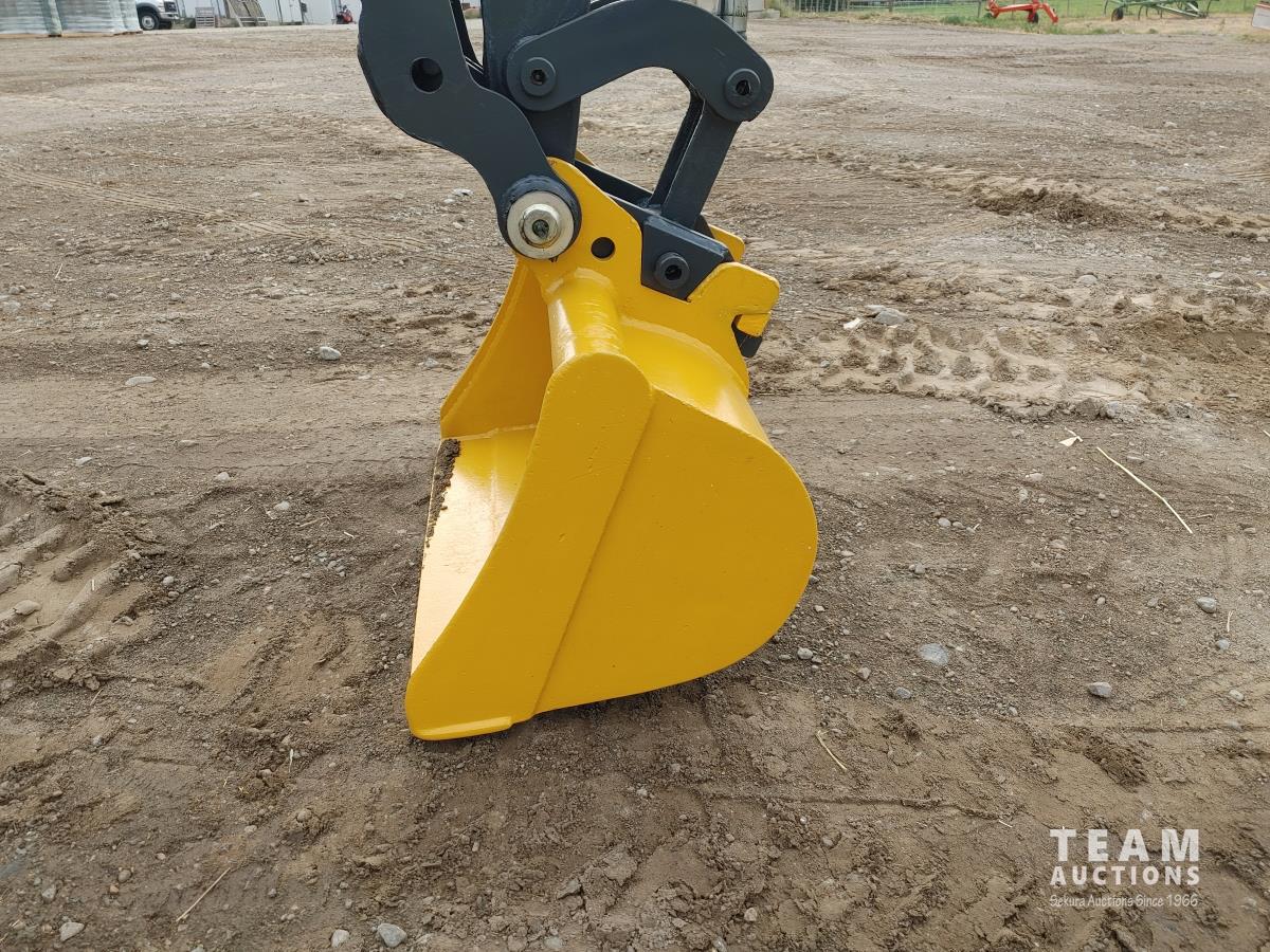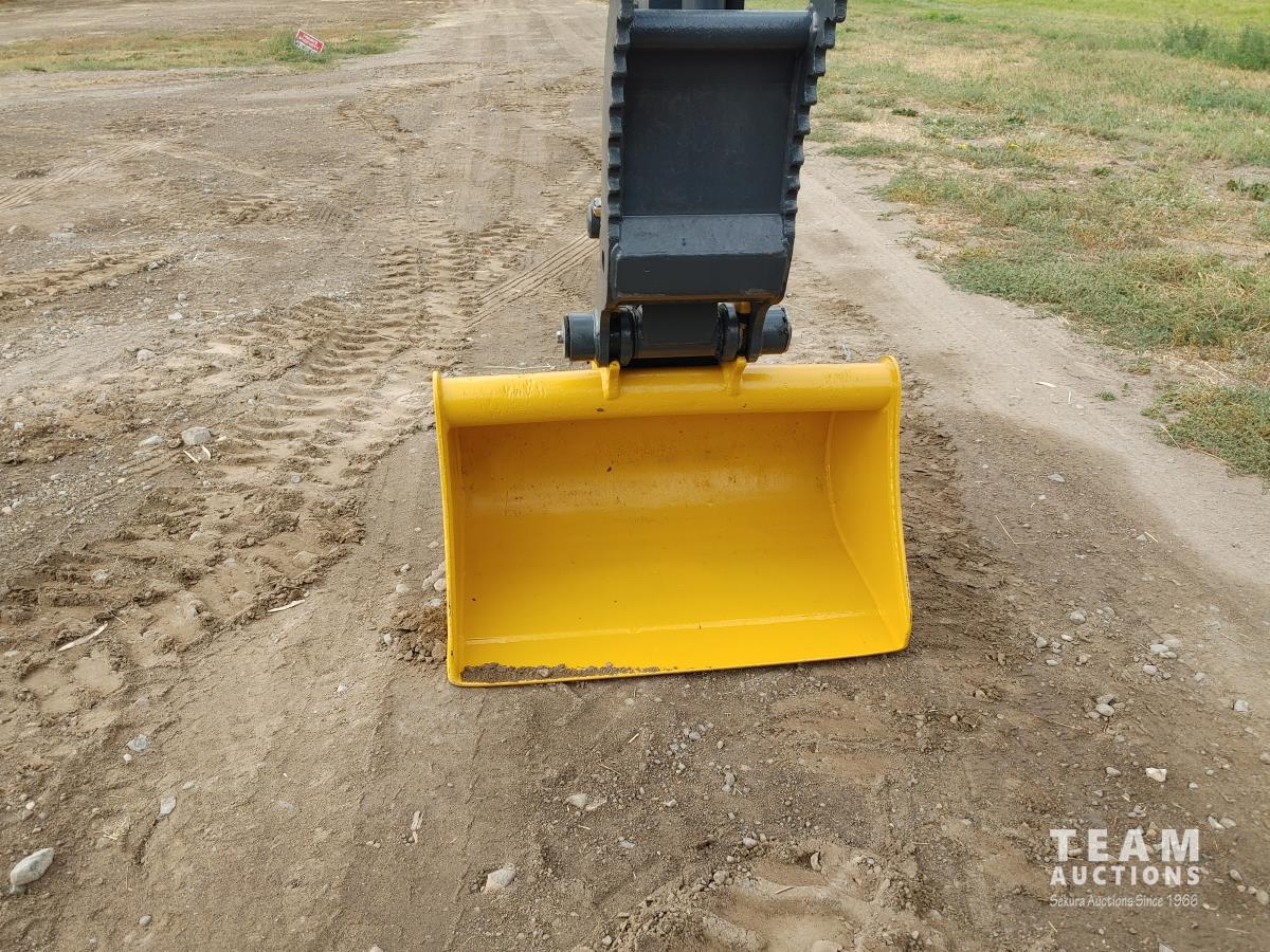 Q/C, 33 inch clean up bucket, 52 Inch, Hydraulic thumb, aux hydraulic, dozer blade, rubber track, A/C, radio, c/w manual