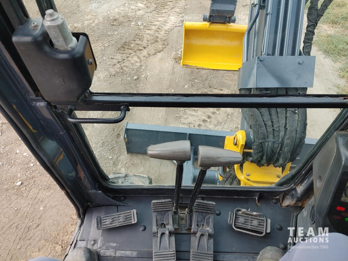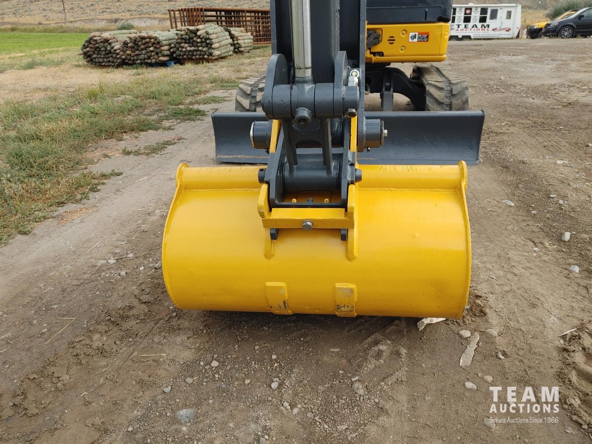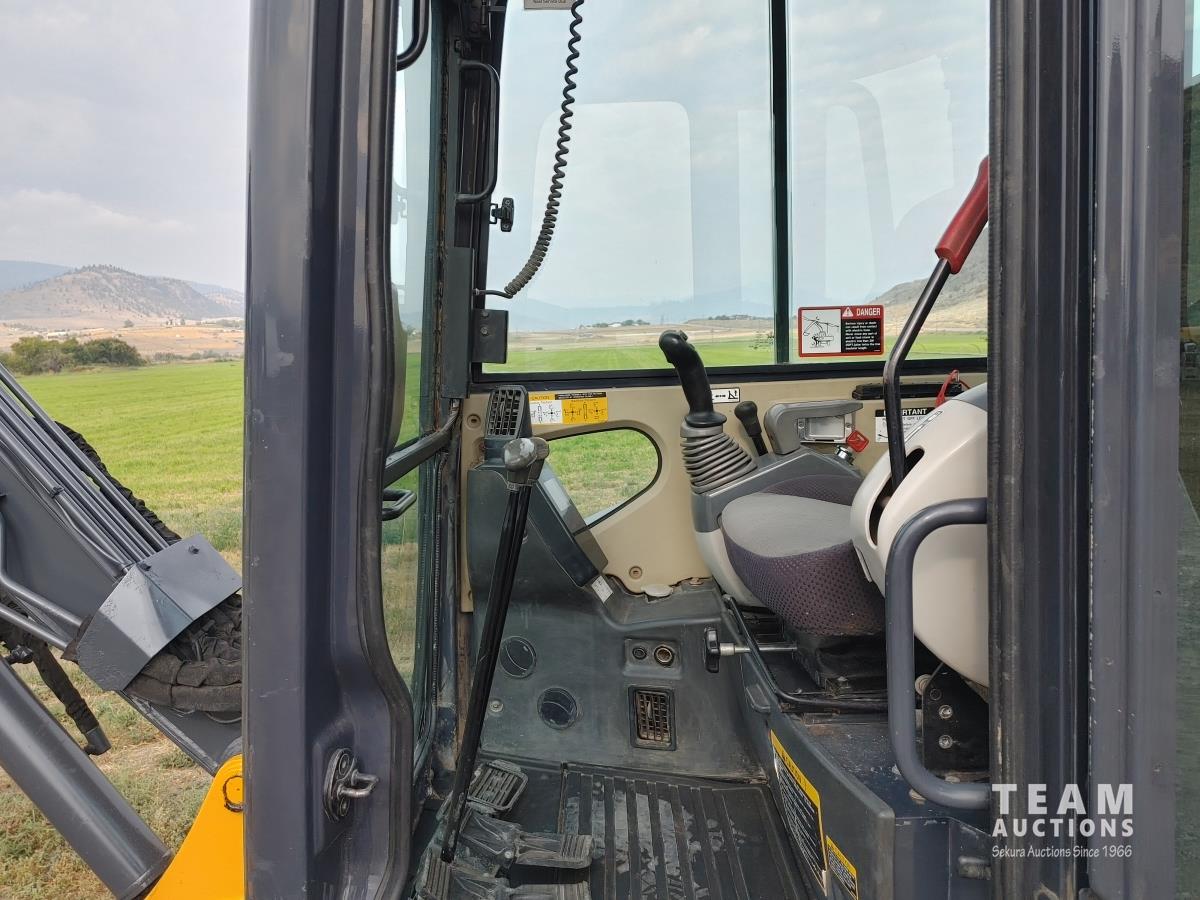 Q/C, 33 inch clean up bucket, 52 Inch, Hydraulic thumb, aux hydraulic, dozer blade, rubber track, A/C, radio, c/w manual