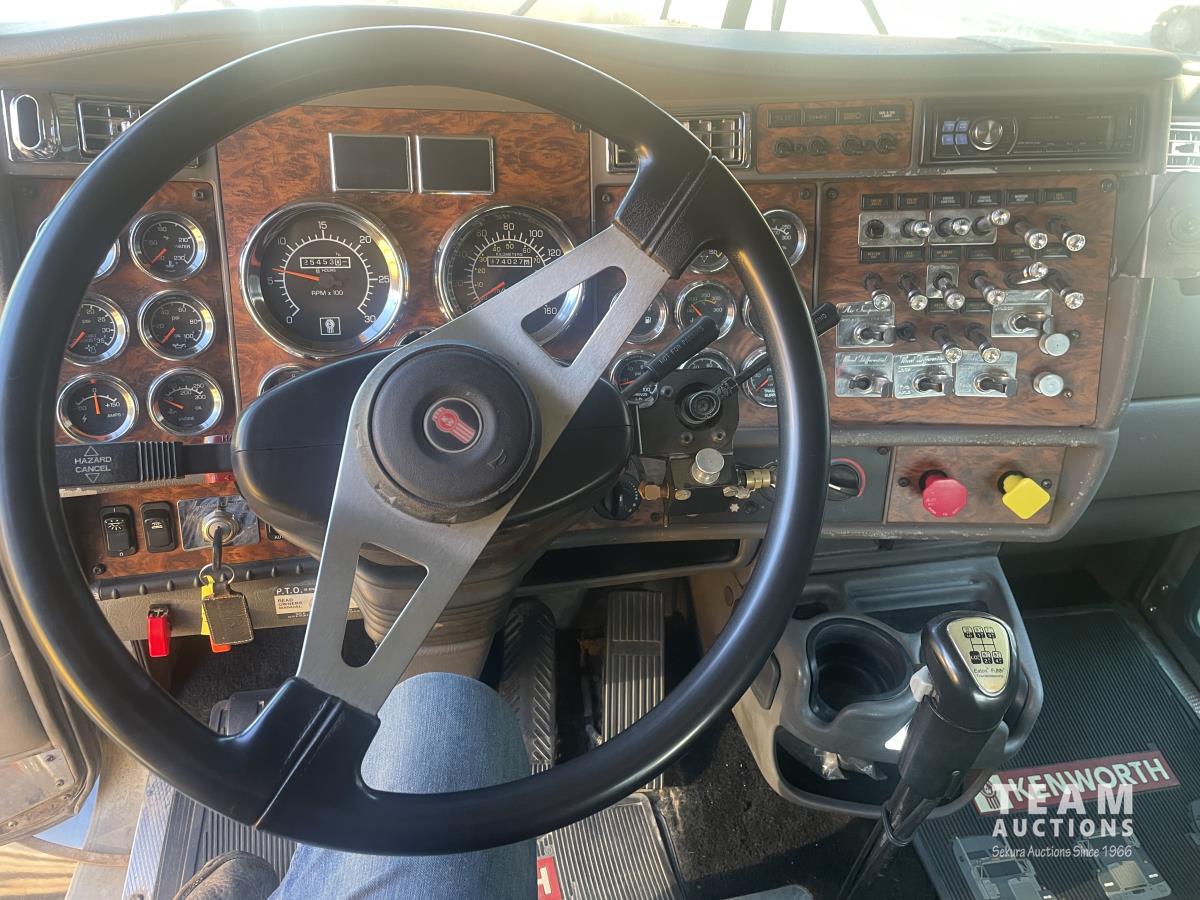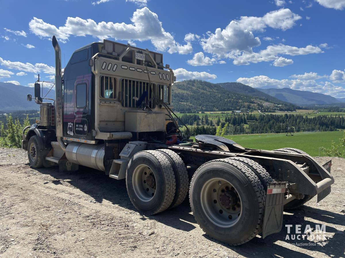 Caterpillar, s/n 6NZ, Eaton Fuller 18 speed transmission, NeWay air ride suspension, 4 way locking differential, fifth wheel slide, 20,000 lb front, 46,000 lb Eaton rears, 228 inch wheelbase, aluminum moose bumper, aluminum rims, 11R24.5