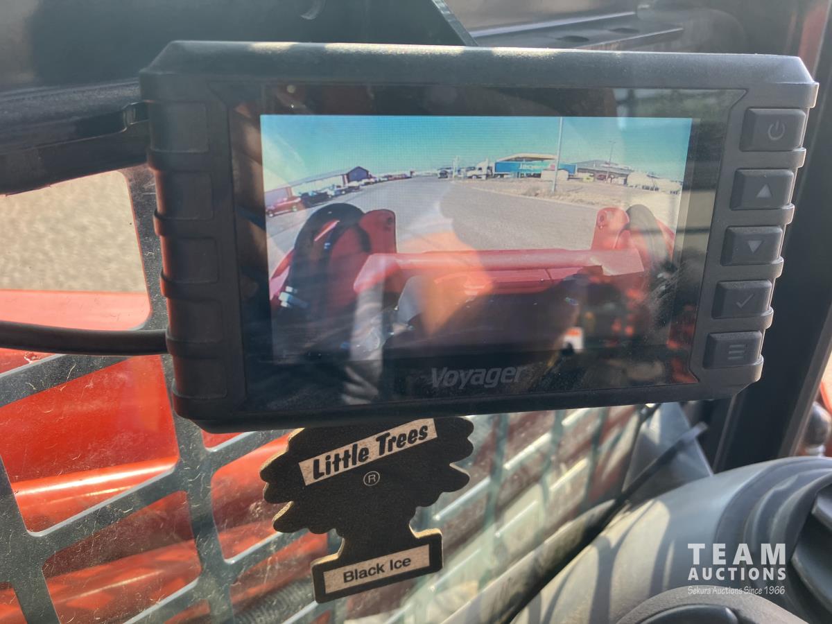 Enclosed cab, air conditioned cab, joystick steering, rear camera, auxiliary hi-flow hydraulics, 84 inch bucket w/ Q/C
