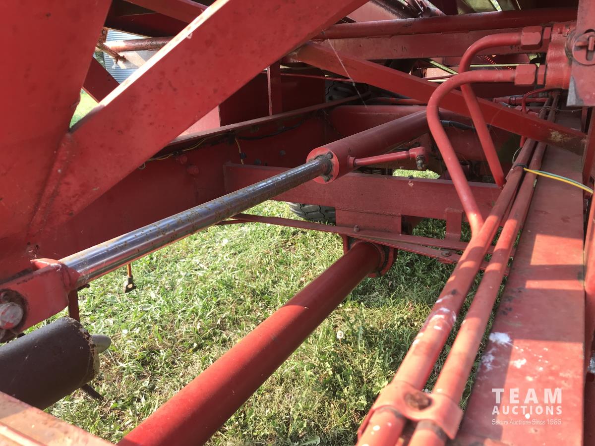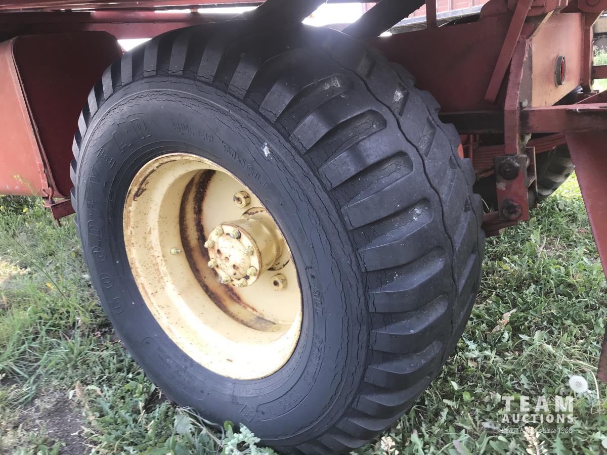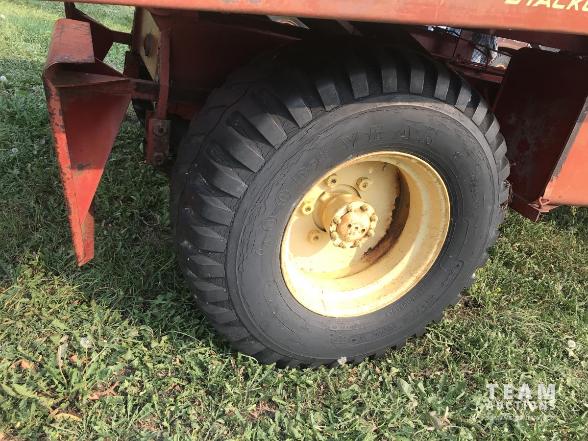 160 bale capacity, Cab, Ford 361 V8 gas engine, 4 speed manual transmission, 2 speed axle, 14-17.5 front & 40X19-19.5 rear tires