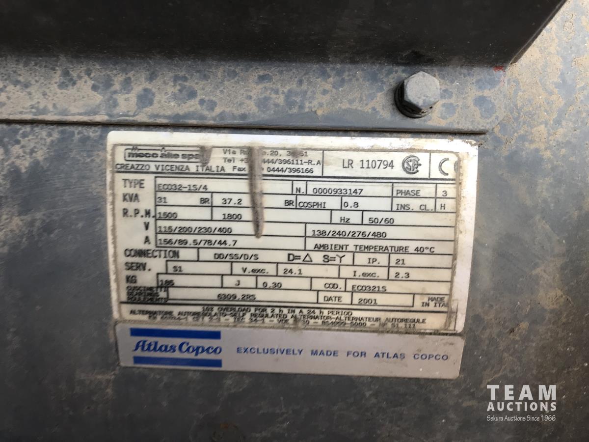 2496 2002 Altas Copco QAS28 30KVA 25KW Generator on S/A Trailer