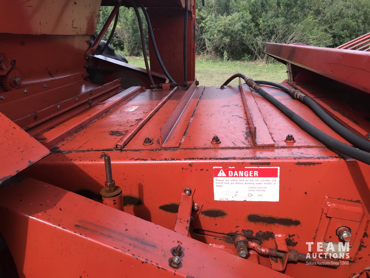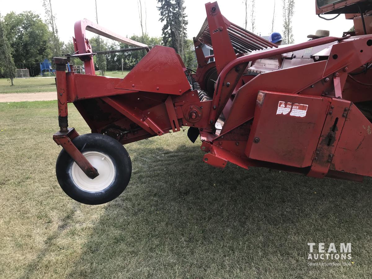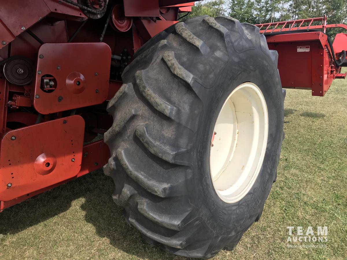 6 belt pickup header, hydro transmission, header reverser, straw spreaders, 24.5-32 drive tires