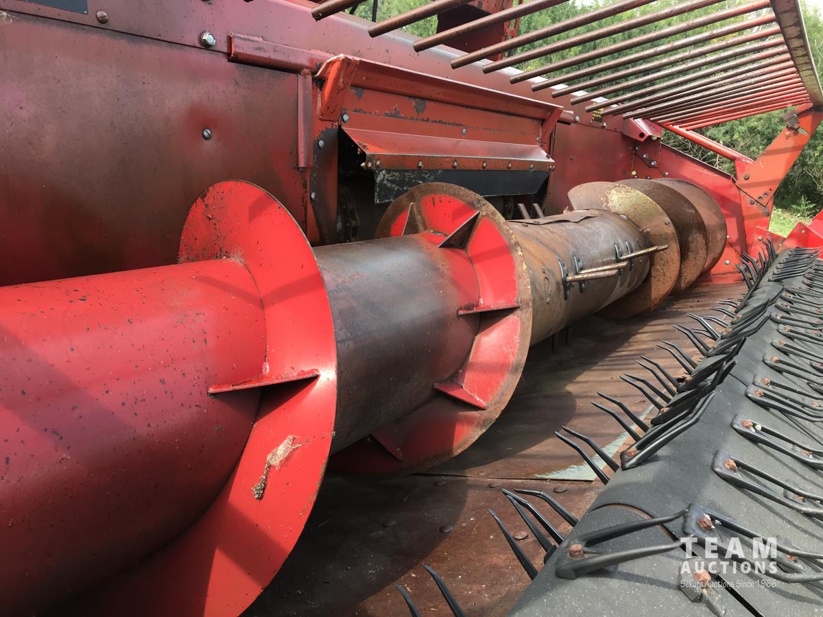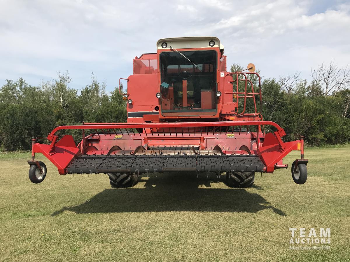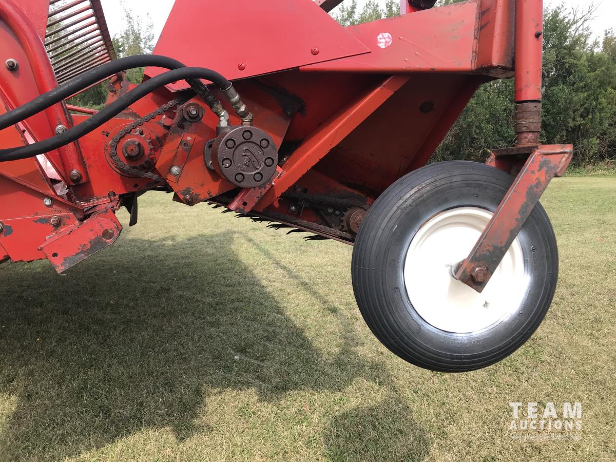 6 belt pickup header, hydro transmission, header reverser, straw spreaders, 24.5-32 drive tires