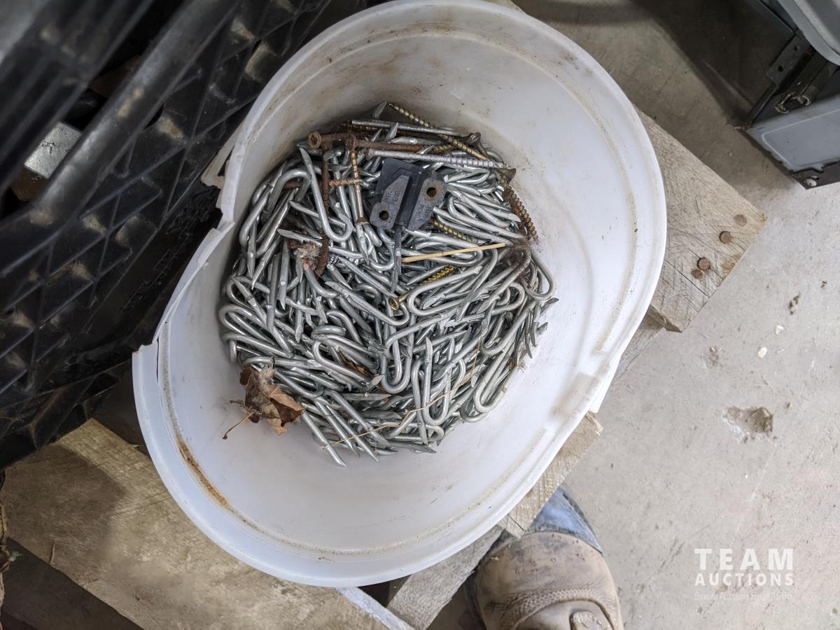 1203 Qty of Assorted Nails, Hand Tools & Tarp