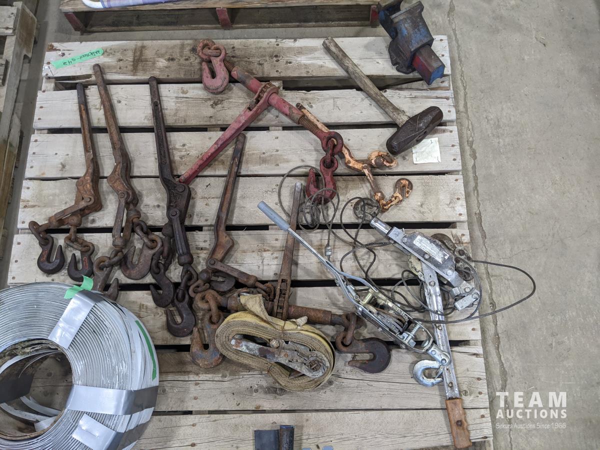 1189 Qty of Boomers, Ratchets, Bench Vise, Banding & Hammer