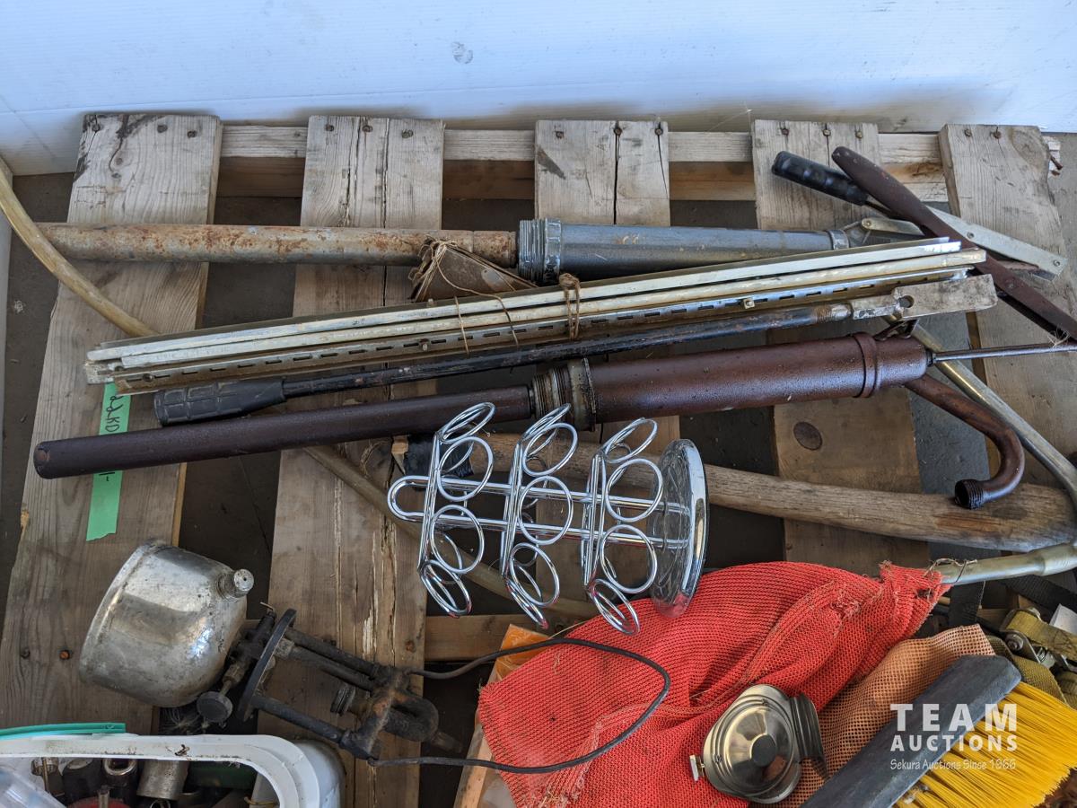 Broom heads, manual fuel pumps, splitting axe