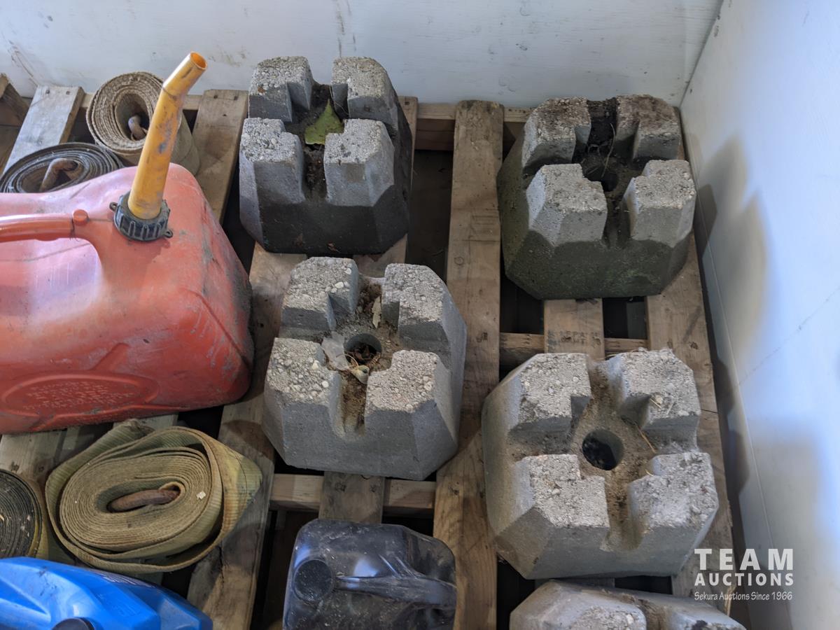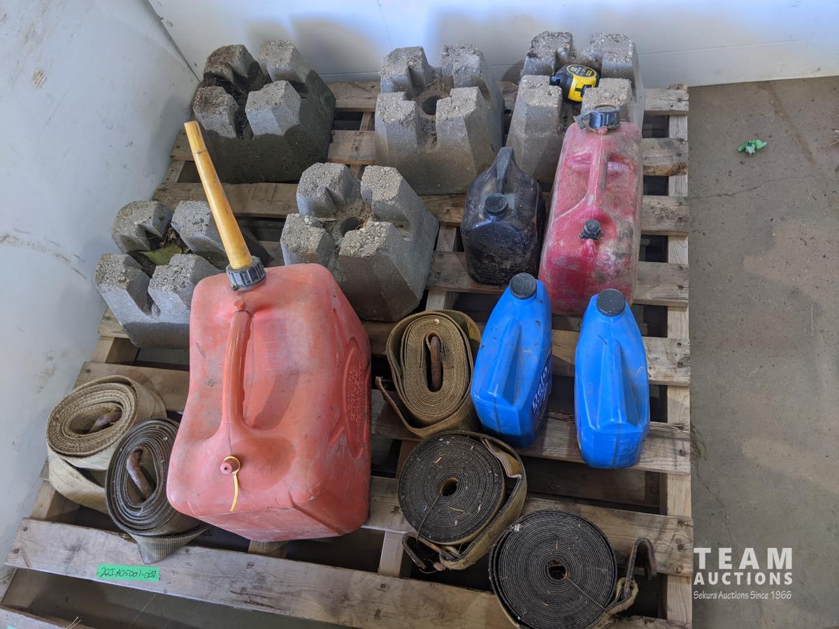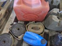 Various fluids, straps, jerry cans, 4X4 post blocks
