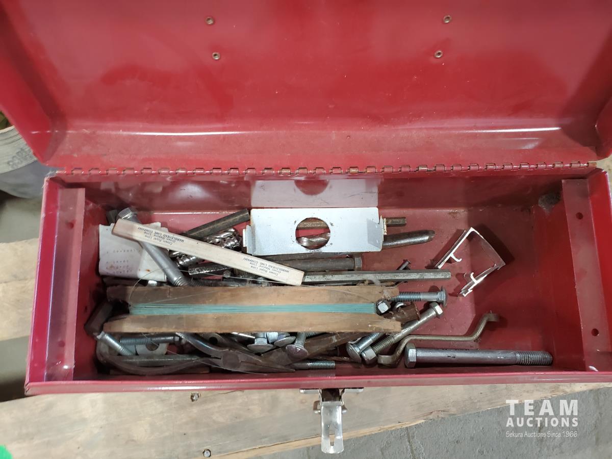 Assorted bolts, recepticals, battery cables, tool box, foam anchors