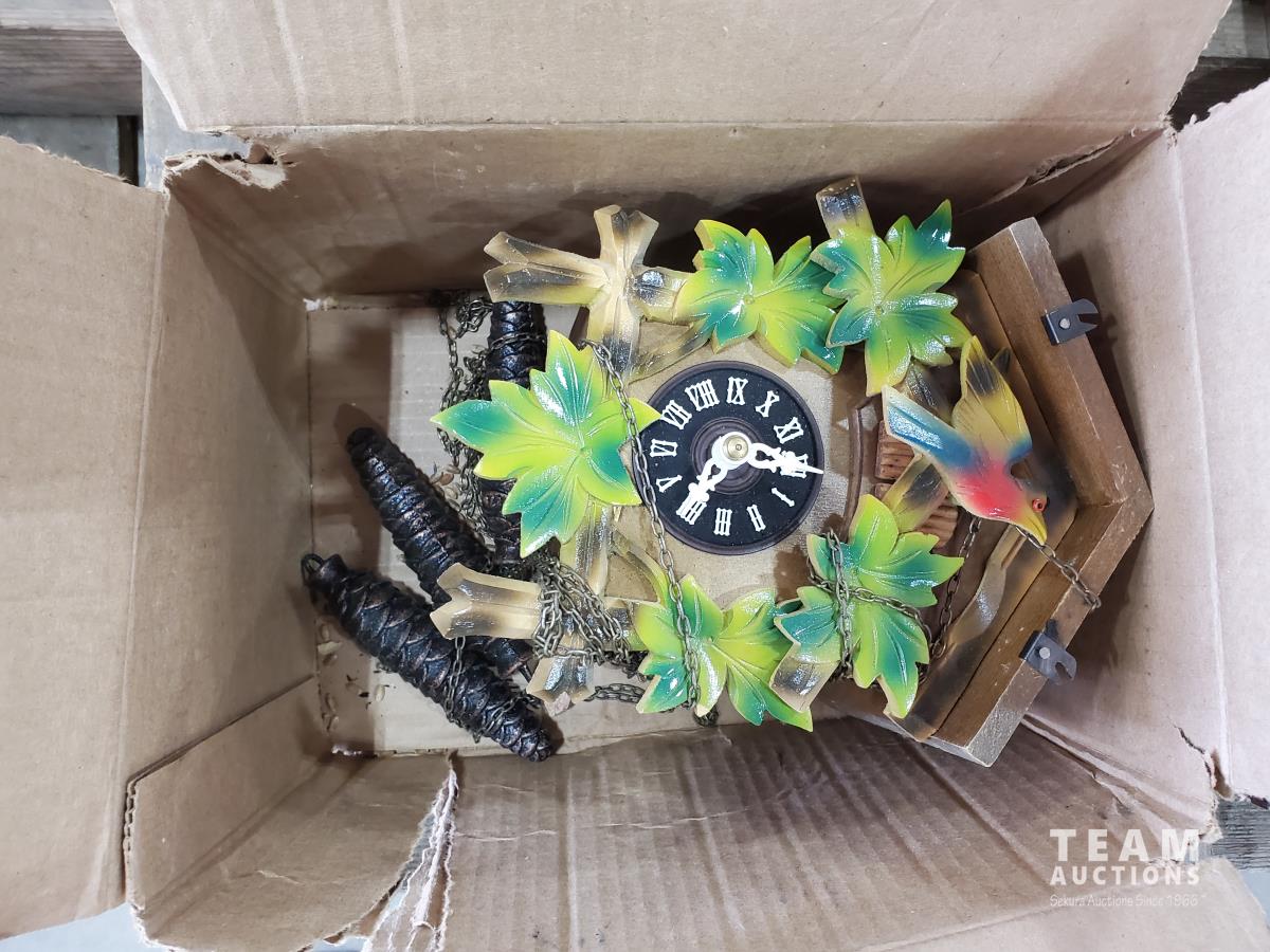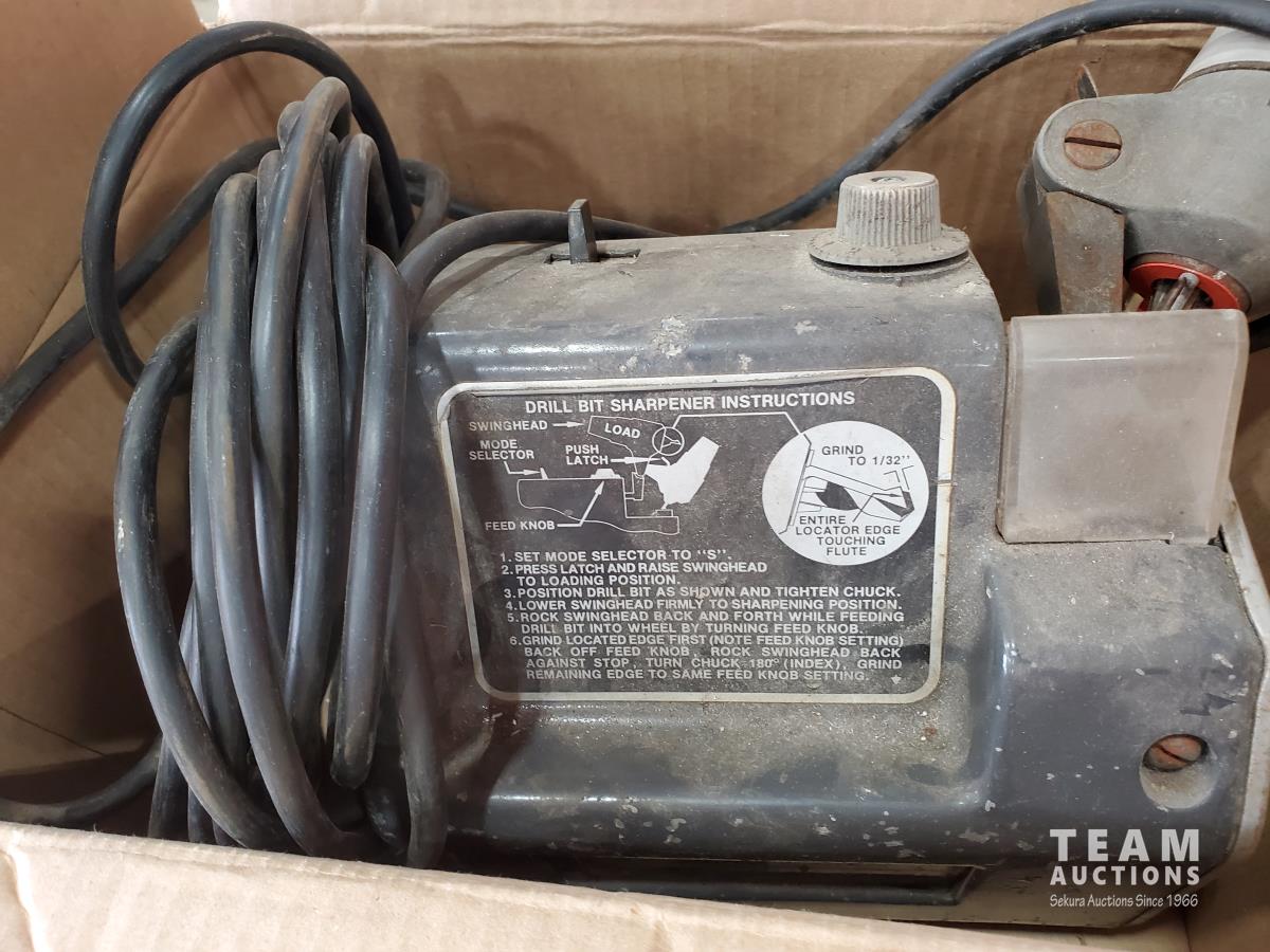 Coo-coo clock, drill bit sharpener, sharpening stones, vise off lathe, nails