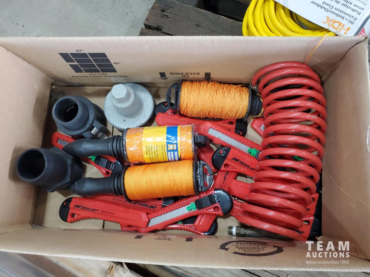 Knives, air hose, lights, nylon line, tire chains, c-clamps, sand bags