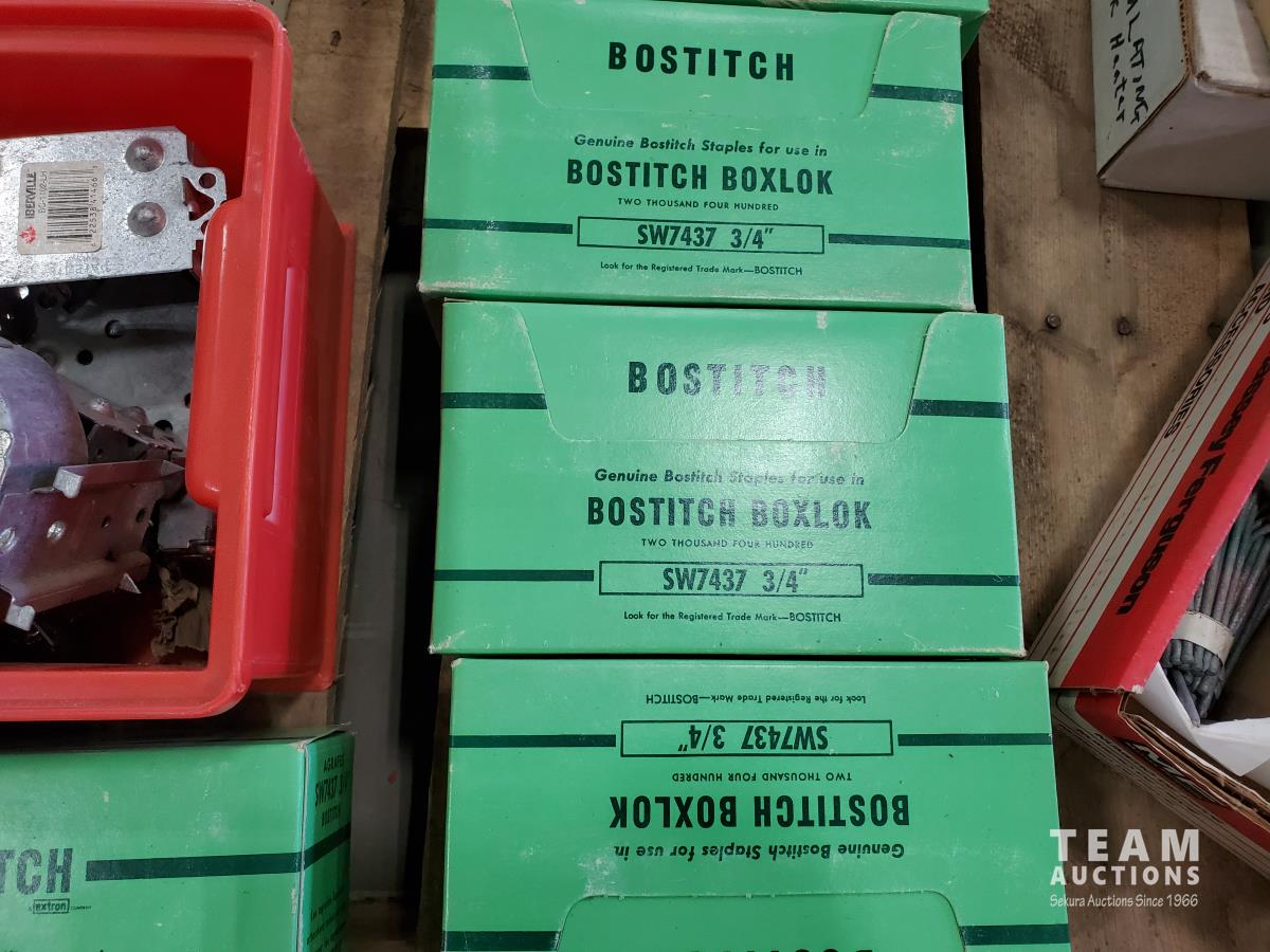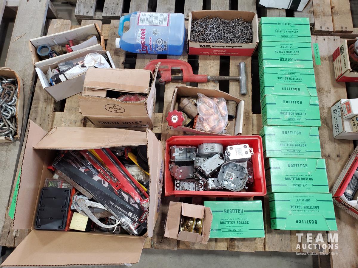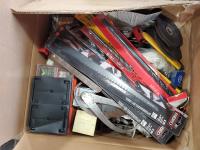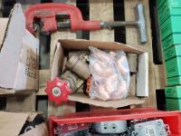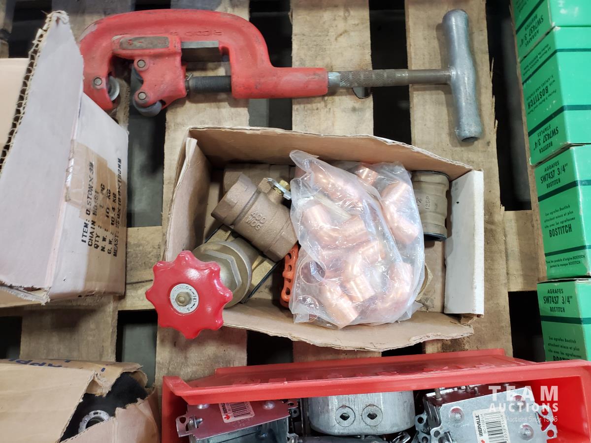 Bostitch 3/4 staples, pipe cutter, valves, drill bits, miscellaneous tools
