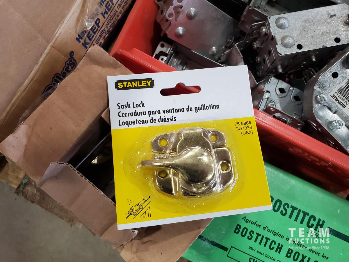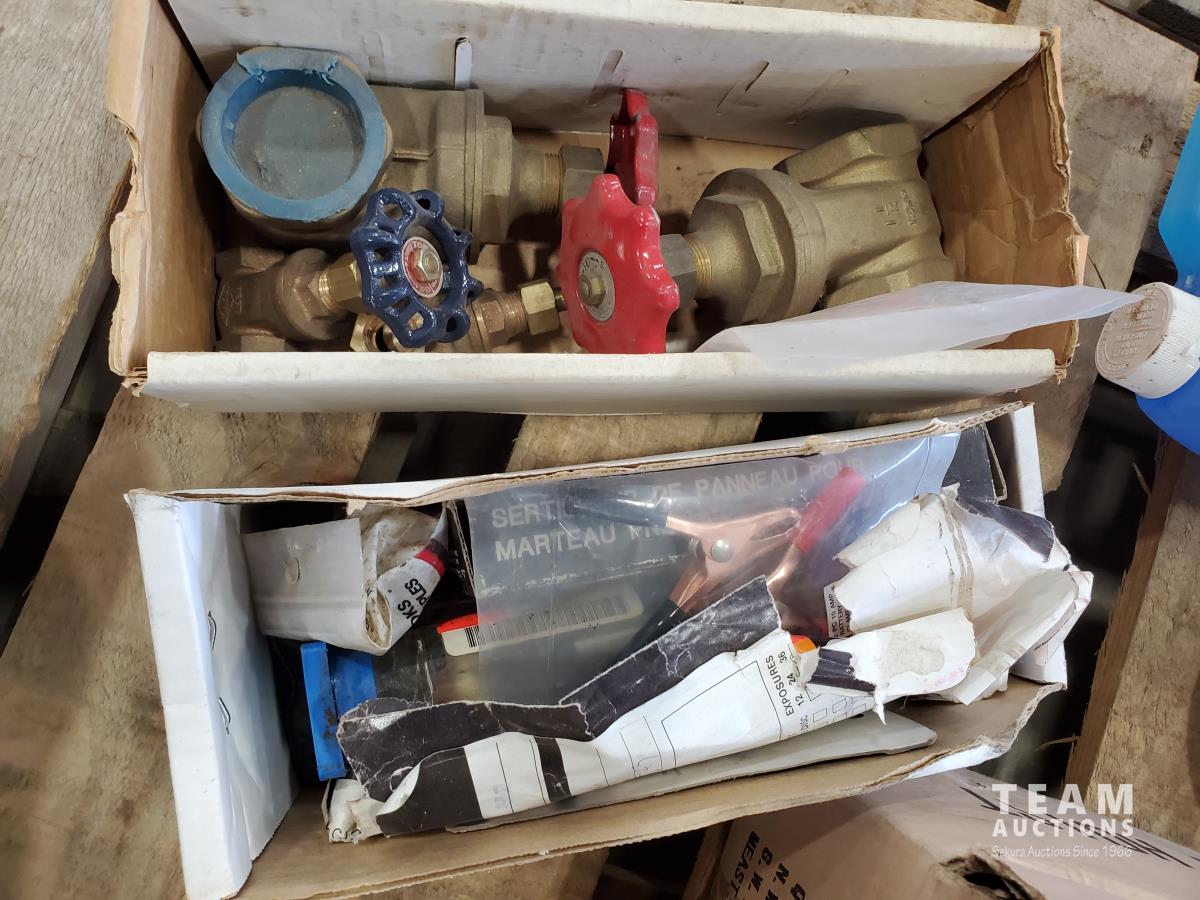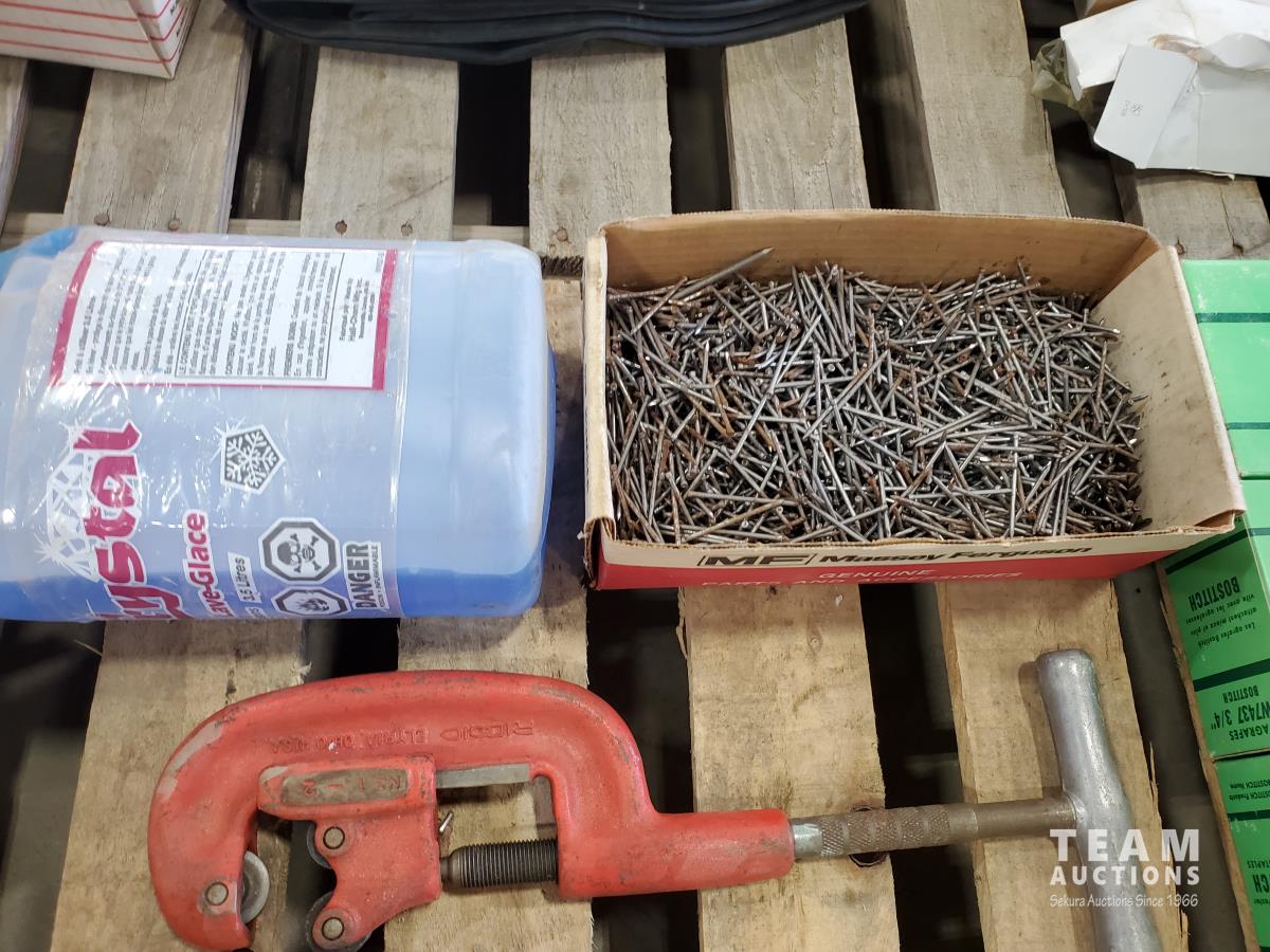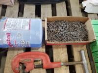 Bostitch 3/4 staples, pipe cutter, valves, drill bits, miscellaneous tools