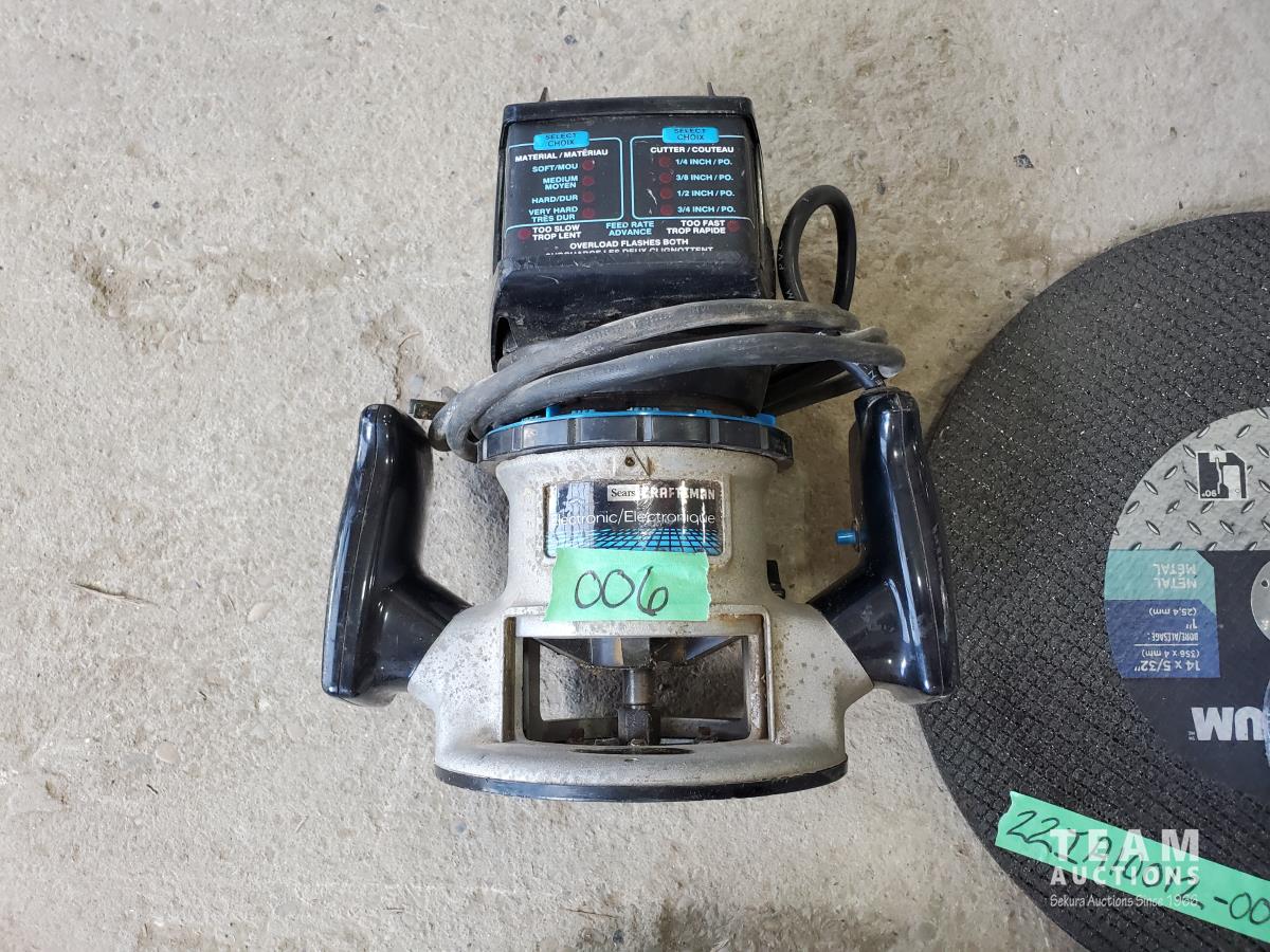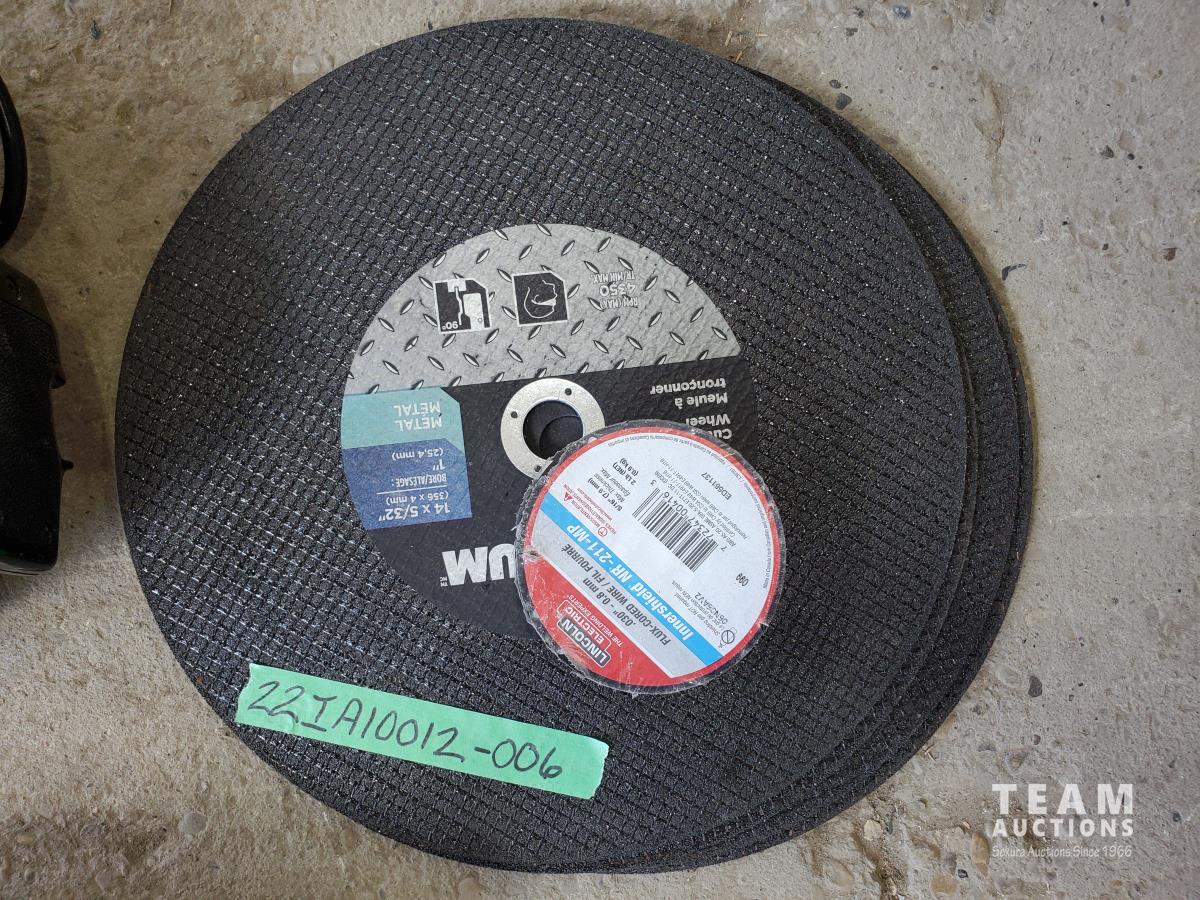 (4) 14 inch chop saw blades, flux corded mig welder and router