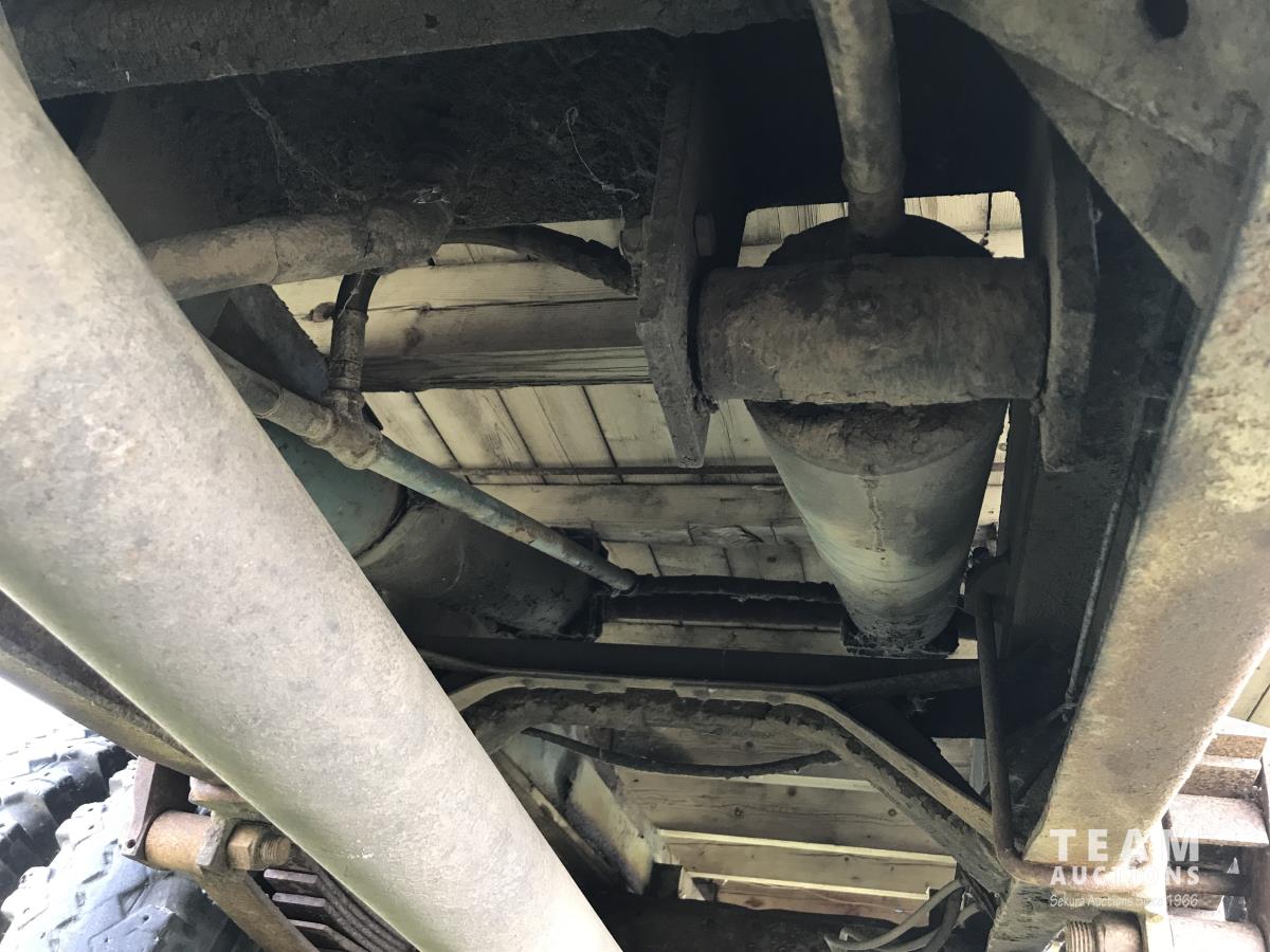 391 V8 engine, 4 speed manual transmission, 2 speed rear axle, 16 ft wood box, dual cylinder hoist, 10.00-20 tires