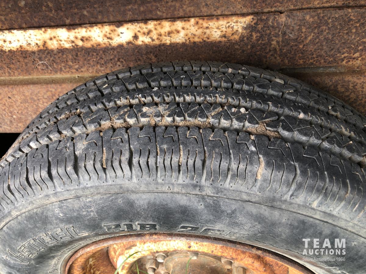 8 ft wide, 8 bolt axles, king pin, 12 ft sides for wood box, hoist with remote hydraulic connectors, stake pockets, 265/75R16, 245/75R16 & 235/85R16 tires