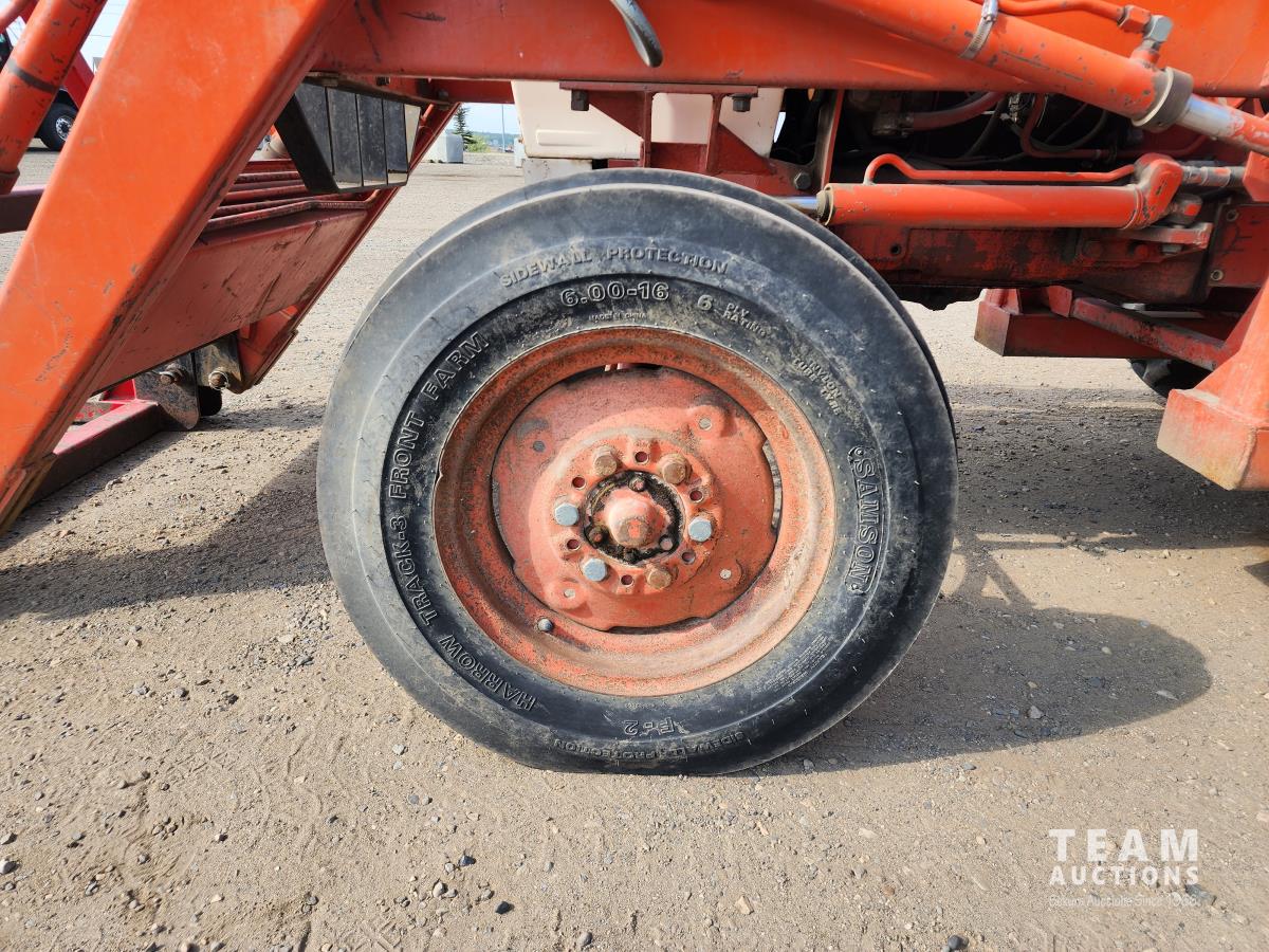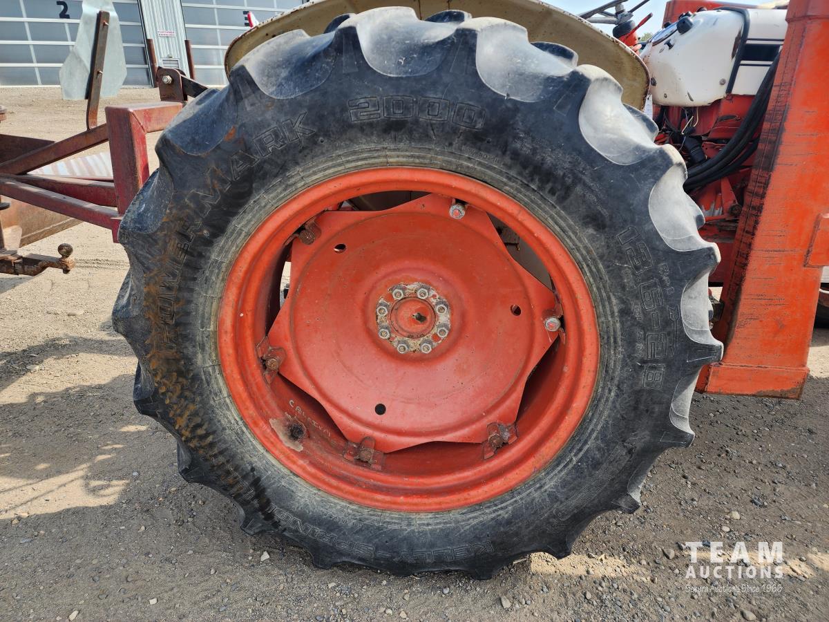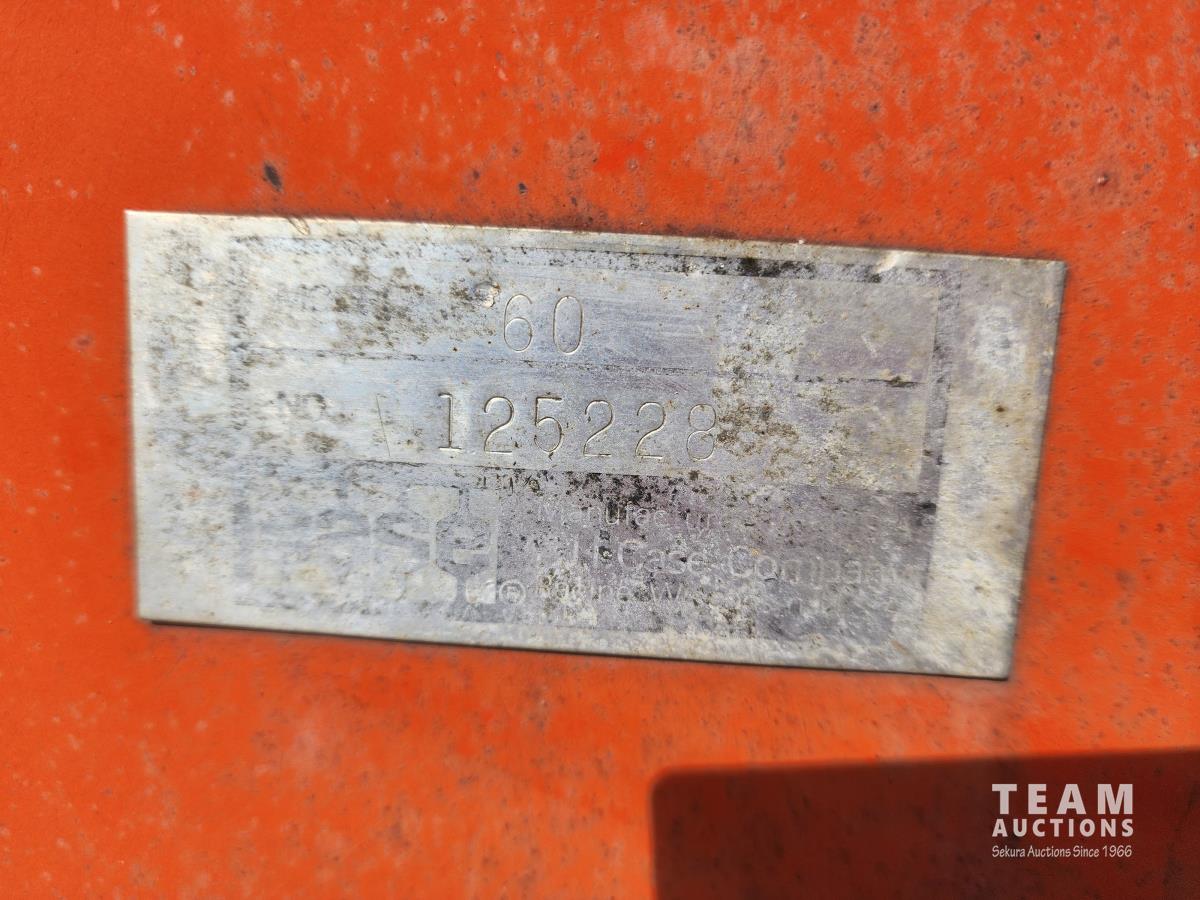 Case 60 FEL, 5 ft bucket, bale forks, 3 cylinder gas engine with circulating block heater, 12 speed transmission, 3 PT hitch, (2) rear hydraulic outlets, 540 PTO, 90 inch rear 3Pt blade, 6.00-16 front & 13.6-28 rear tires