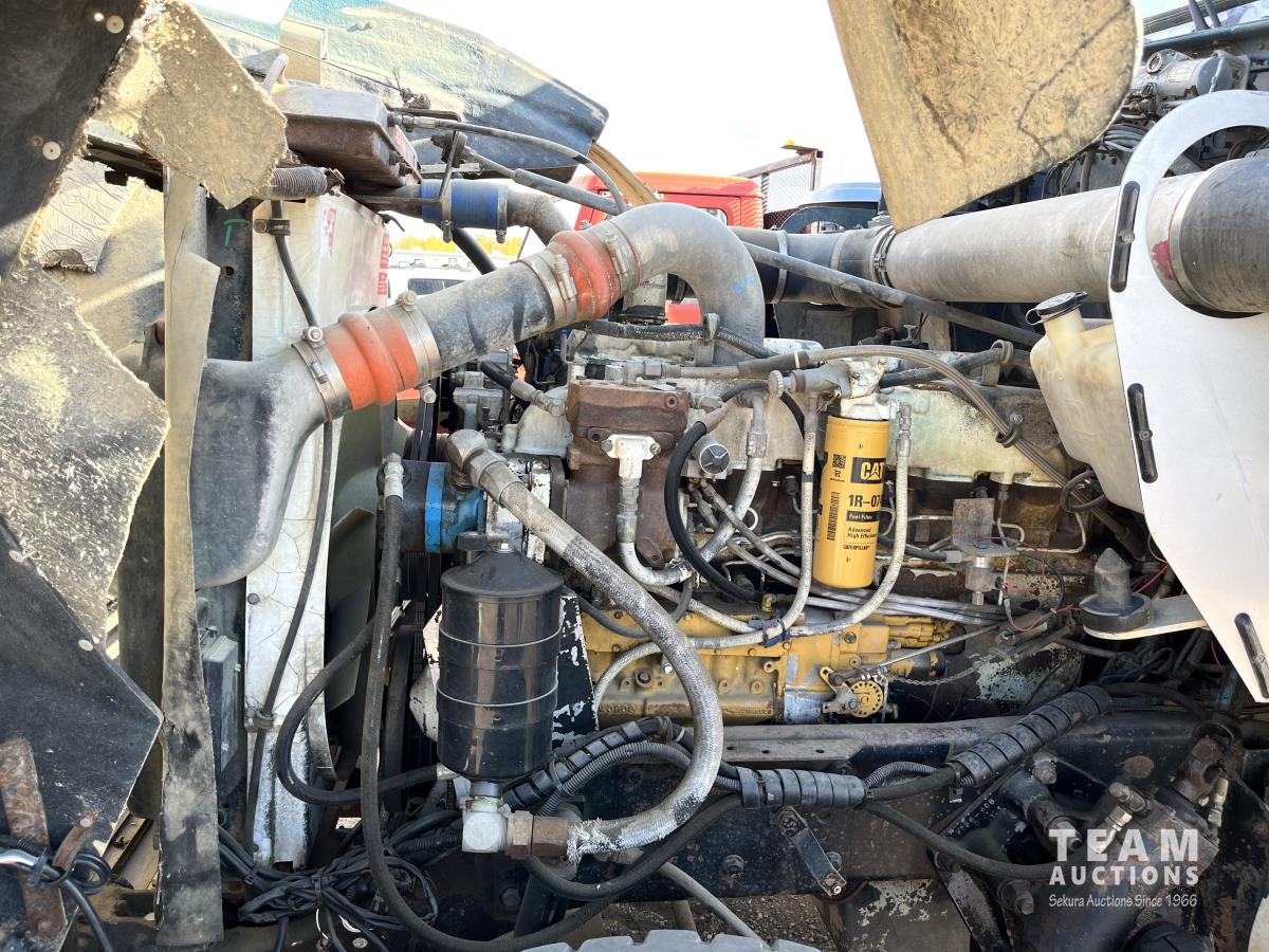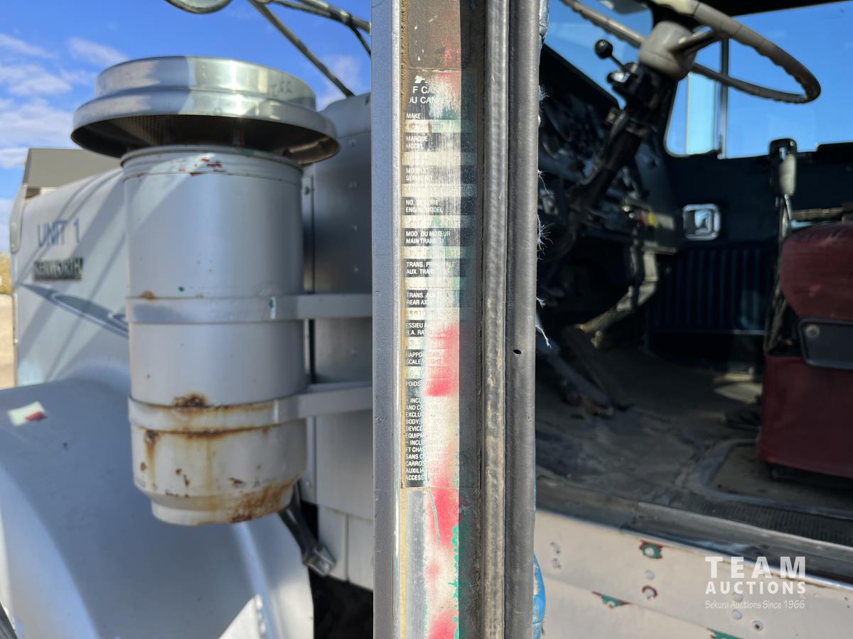 Caterpillar 3406B engine 14.6 L, 15 speed transmission, 15 ft deck 7 ft beaver tails 5 ft flip over ramps, (2) under deck mount cabinets, 225 inch WB, differential lock, spring suspension, tire chains, 11R24.5 tires.