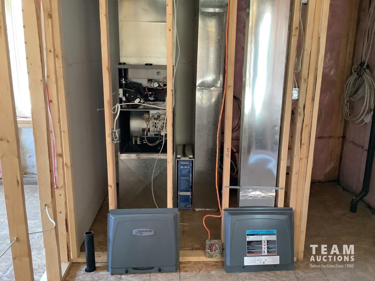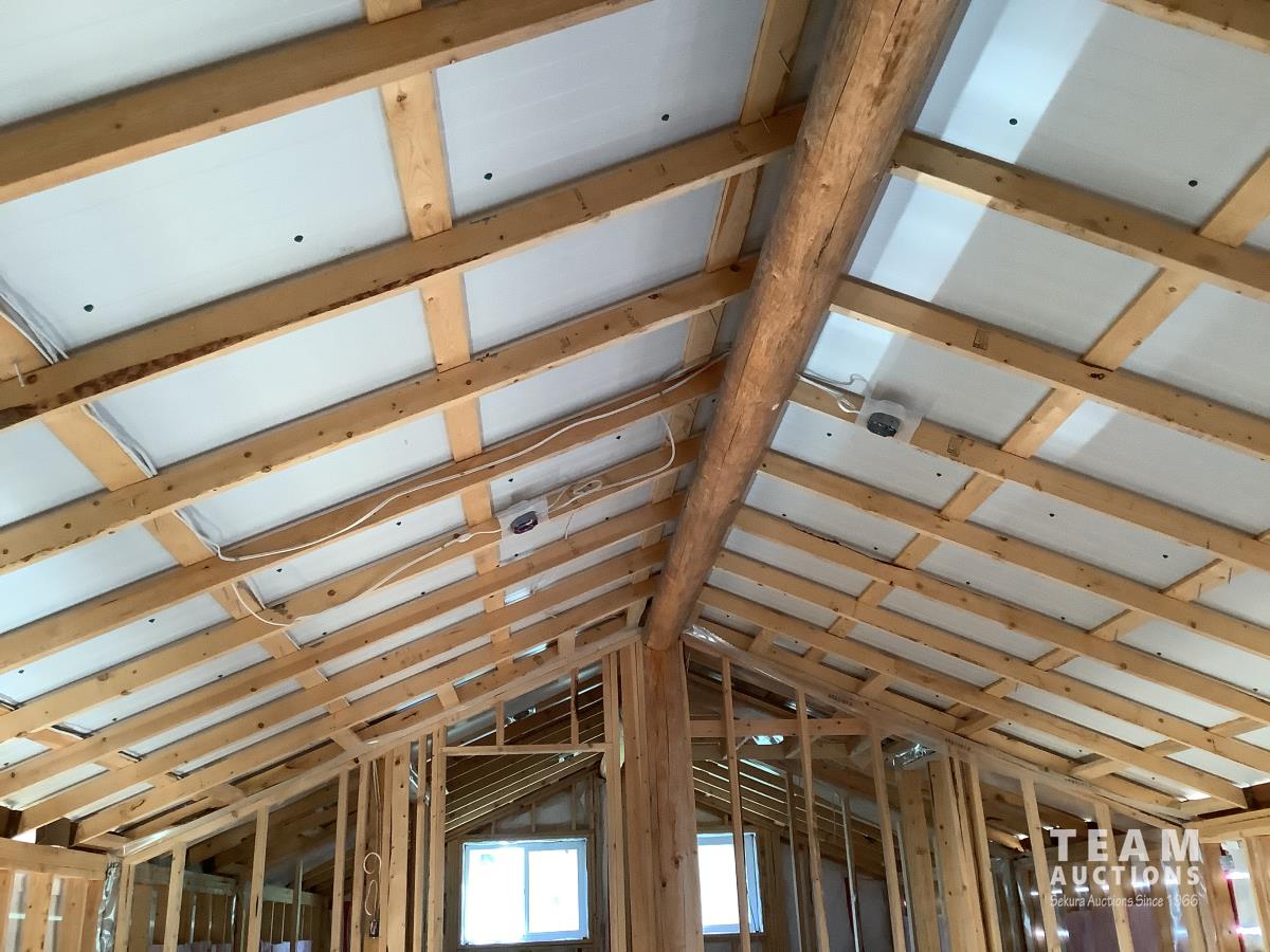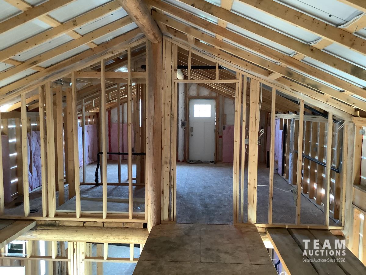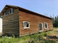 Built 7 years ago with spruce logs, all wiring installed up to breaker box, new Armstrong furnace & ducts installed, plumbing roughed in with shower base & Jacuzzi tub, Kuhltech windows and 2 inch foam insulated roof panels and floor with same 2 inch insulation, all doors are installed and chinking in logs. Main floor plan - (2) side entry doors, furnace room, (2) bedrooms with shower base and Jacuzzi tub, office area, open kitchen and living room area, pantry, sliding door deck access. Upper floor plan - (2) bedrooms with one at each end with bathrooms and upper deck access from one. There is (4) Bedrooms and (3) bathrooms in this plan.