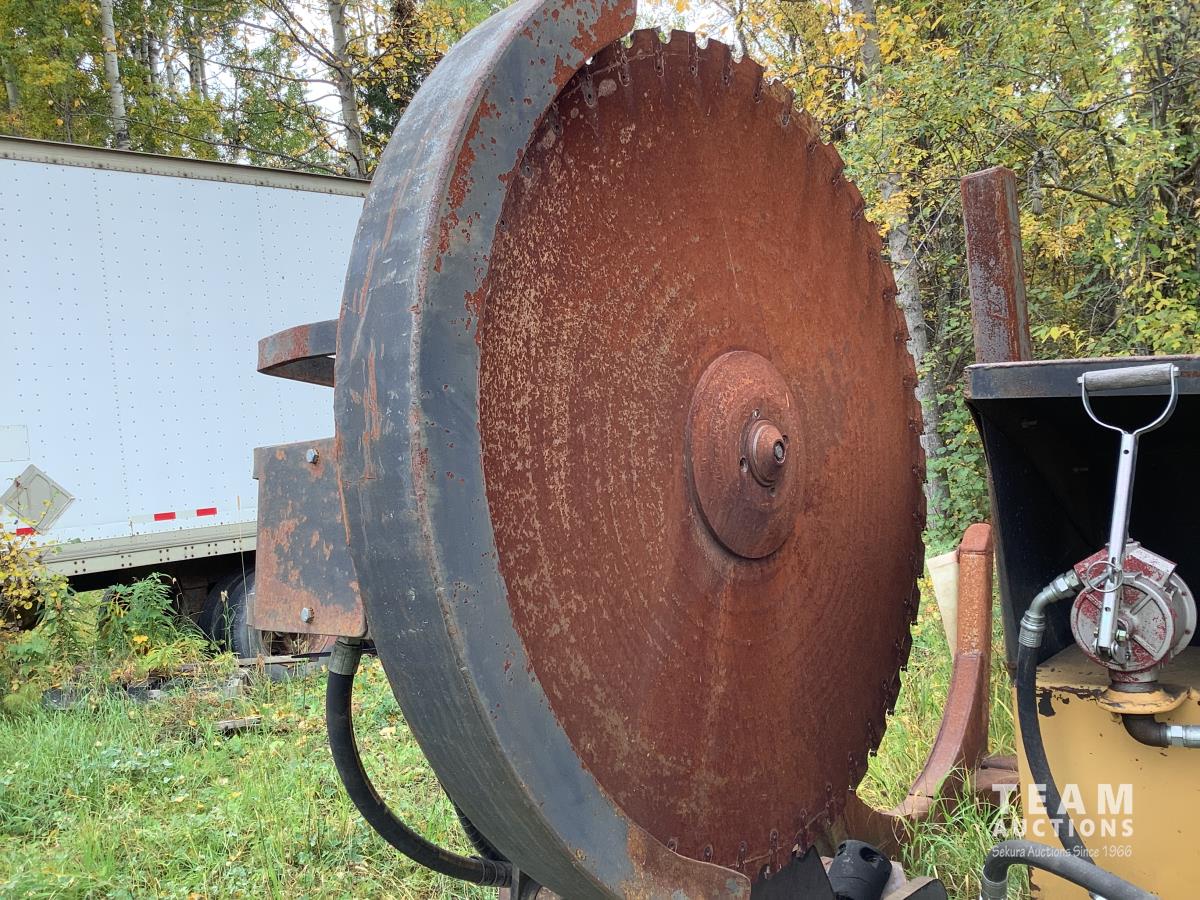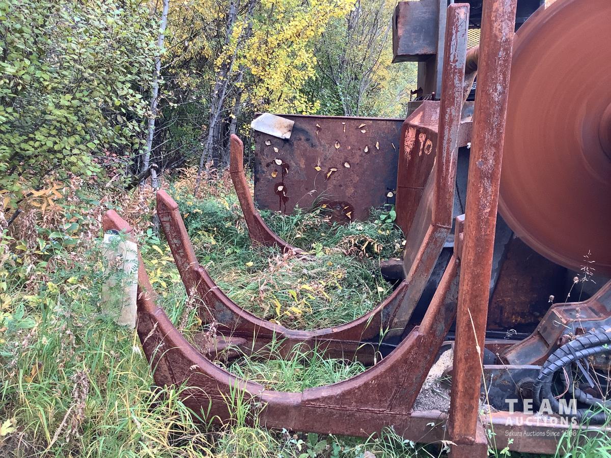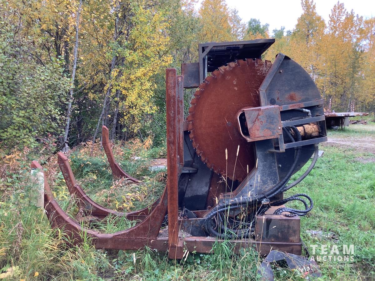 With a good operator on a button loader all by himself can cut 20 cuts of 8 ft poplar per day. Seller will load for buyer. This unit was built new by Tim Rick Welding in Manitoba. They are still in business today building all types of log slashers. If you Tim Rick Welding go to his website you will find unit with all specs or call 204-734-5138.