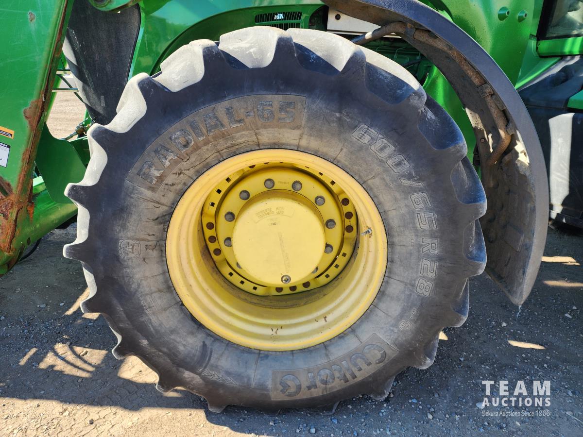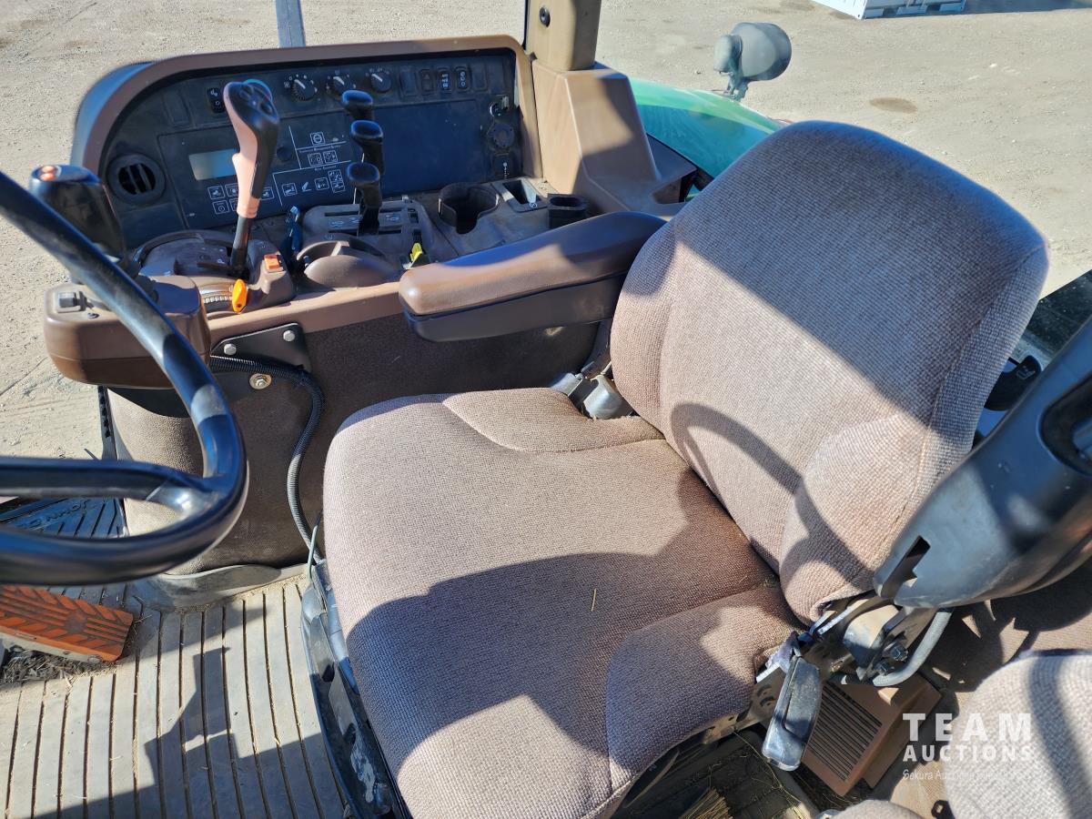 John Deere 746 loader with 96 inch grapple bucket, 220 HP engine, AutoQuad plus 20 speed transmission, left hand reverser, joystick, buddy seat, A/C, radio, 540/1000 PTO, (3) hydraulic outlets, 3pt hitch, 600/65R28 front tires, 710/70R38 rear tires