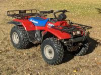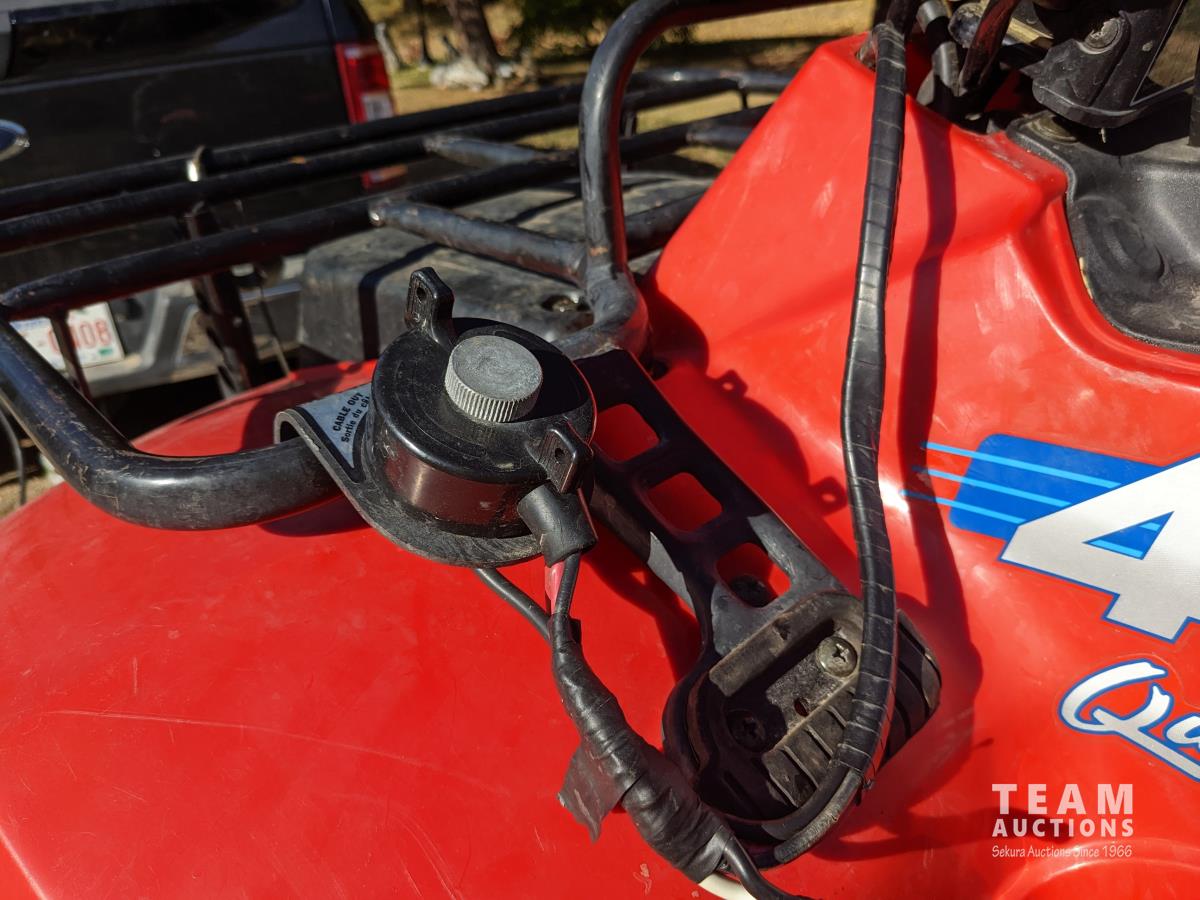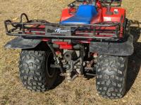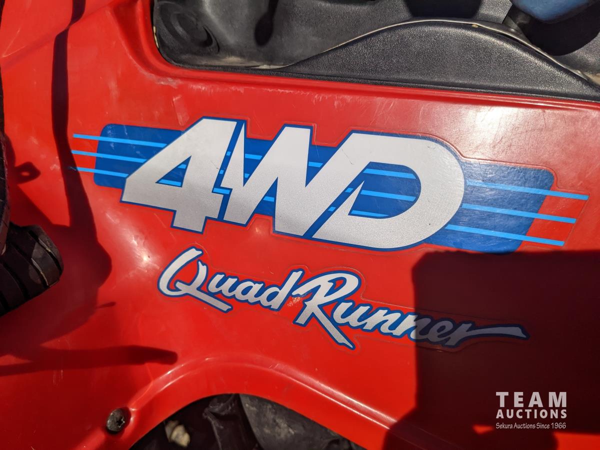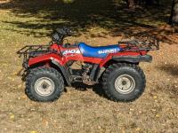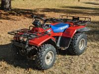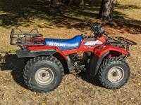 This quad is a second owner machine with 2721 original kilometers, no cracks in plastic and everything works. Needs new choke cable old one broken but still can be used and a tune-up. Starts, runs and everything works. This machine has been kept inside all the time and is in really nice condition for it's age. Comes with original operaters manual and one new CV joint rubber boot.