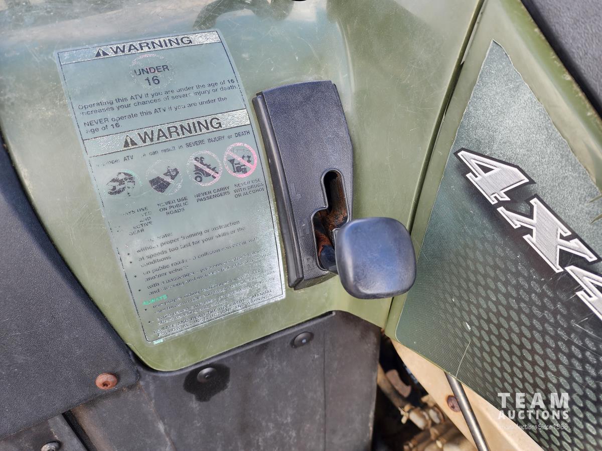 396 cc engine, manual 5 speed transmission, reverse, electric start, winch, front & rear racks, 26X9.00-12 front tires, 26X12.00-12 rear tires