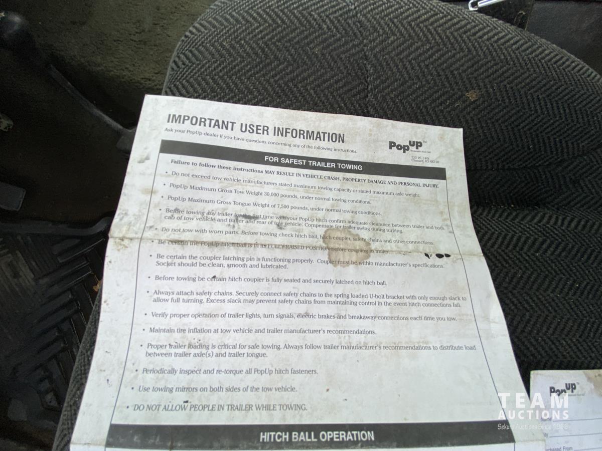 7.5 L, V8, gas, 5 speed manual transmission, P/W, P/L, A/C, 6 ft X 6 ft box, pop up hitch, 33X12.50R16.5 tires