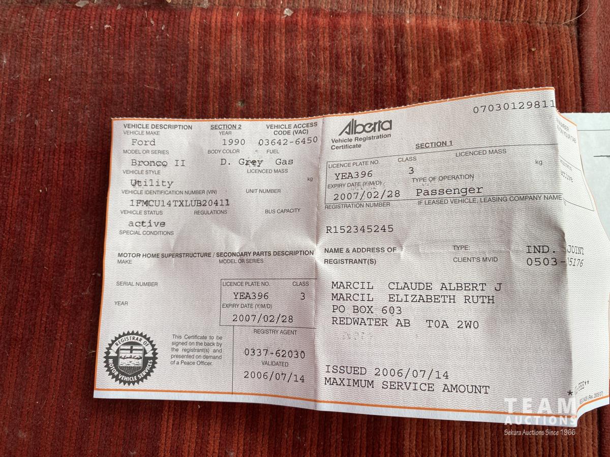 624 1990 Ford Bronco II XL 4X4 Sport Utility Vehicle (Inoperable)