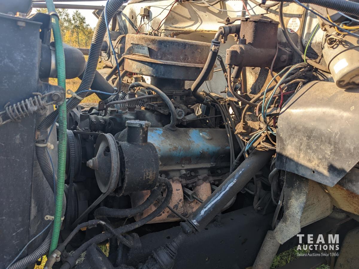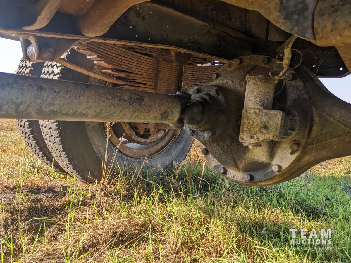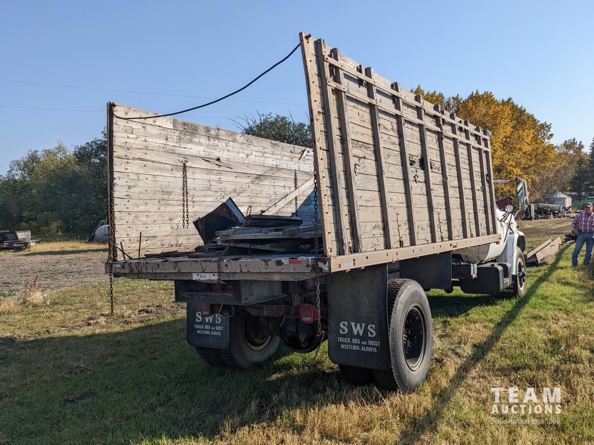 366 V8 Gas engine, 5 & 2 transmission, 16 ft wood box, hoist, spring suspension, 11R22.5 front & 10.00R20 rear tires