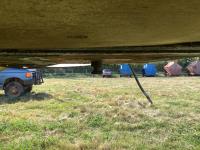 No tarps and no current CVIP. This trailer is a side dump roll out system that was a early model that will spread a windrow and they worked very well. Trailer is in overall decent shape has been parked for several years.