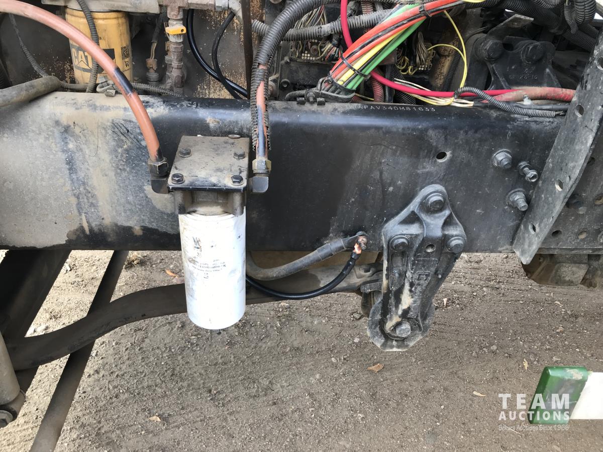 Caterpillar C15, Twin Turbo, 550 HP, engine brake, Eaton Fuller 18 speed transmission, cruise control, tilt & telescopic steering wheel, 60 inch sleeper, HD steel front bumper, 12,600 lb front, super 40,000 rears, differential lock and inner axle lock, 3.91 ratio, front air bags, air ride suspension, aluminum rims, 11R24.5 tires
