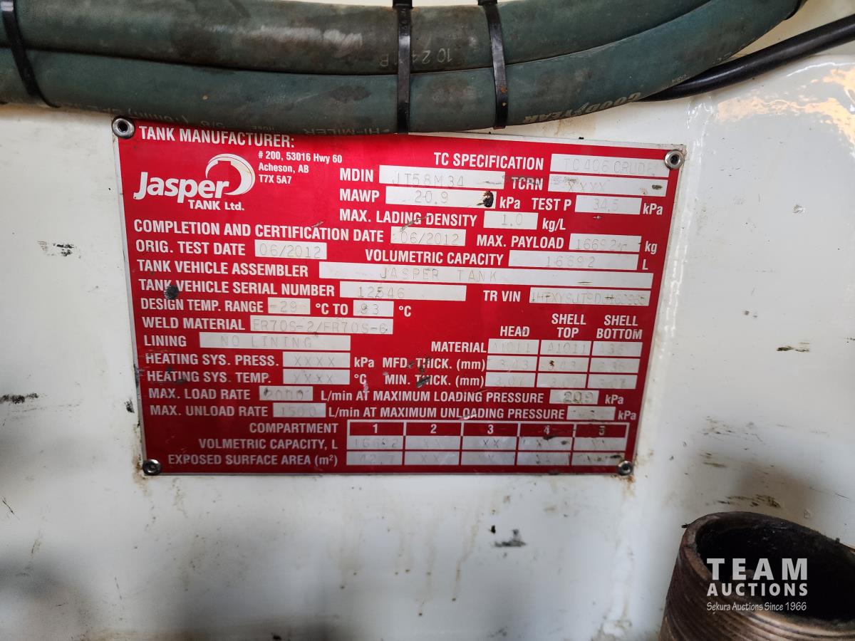 Maxxforce 13, 12.4 L, 475 HP engine, Eaton Fuller 18 speed transmission, air ride suspension, 16,000 lb front, 46,000 lb rears, full locking differential, Jasper TC406 crude tank, 16,692 litres, heated and insulated load box, See level monitor, work lights on rear, P/W, P/L, A/C, aluminum wheels, 11R24.5 inch tires