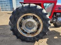4 cylinder diesel engine, 8 speed transmission, (2) hydraulic outlets, 540 PTO, 3pt hitch, 10.00-16 front tires, 16.9-34 rear tires