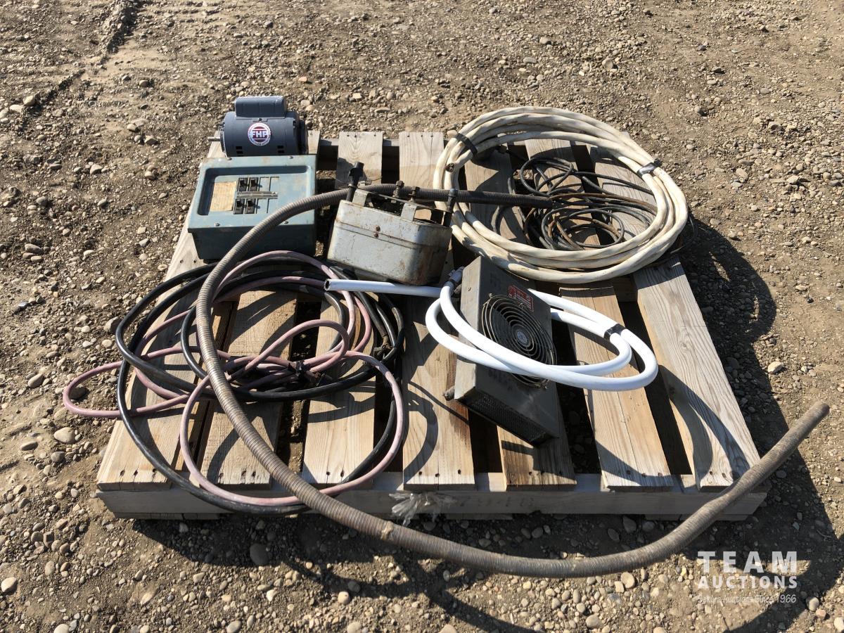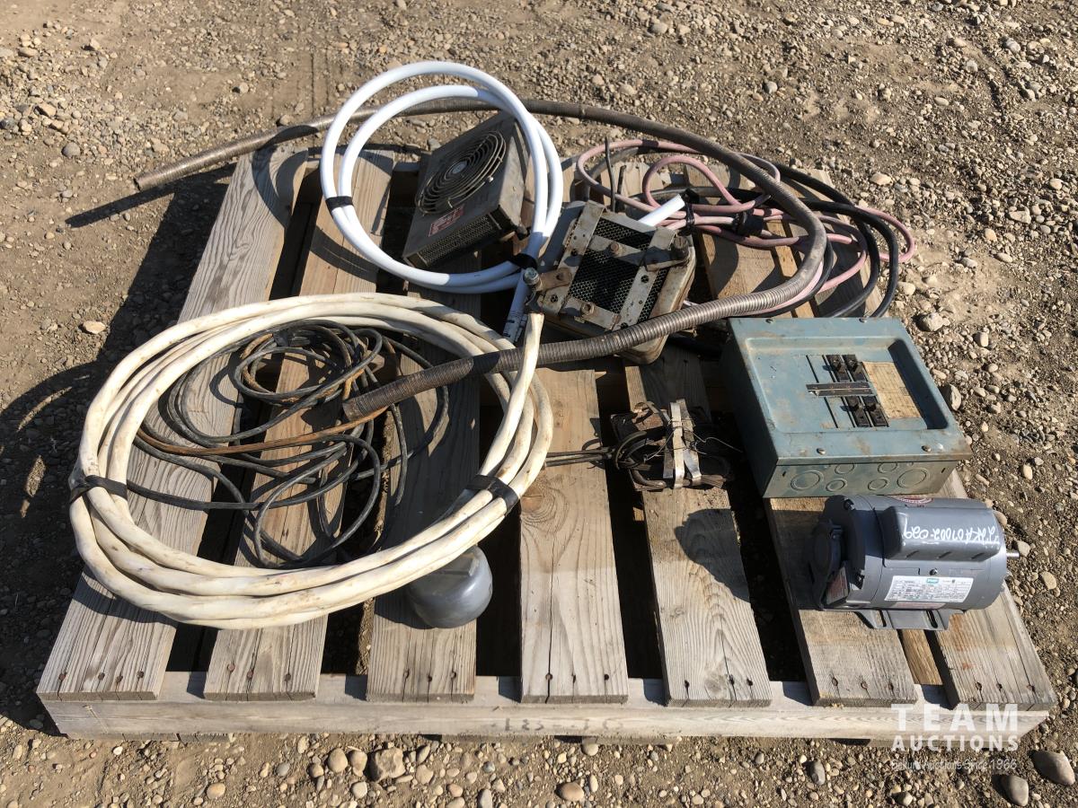 Miscellaneous wire, breaker box, electric 1/4 HP motor, electric fans