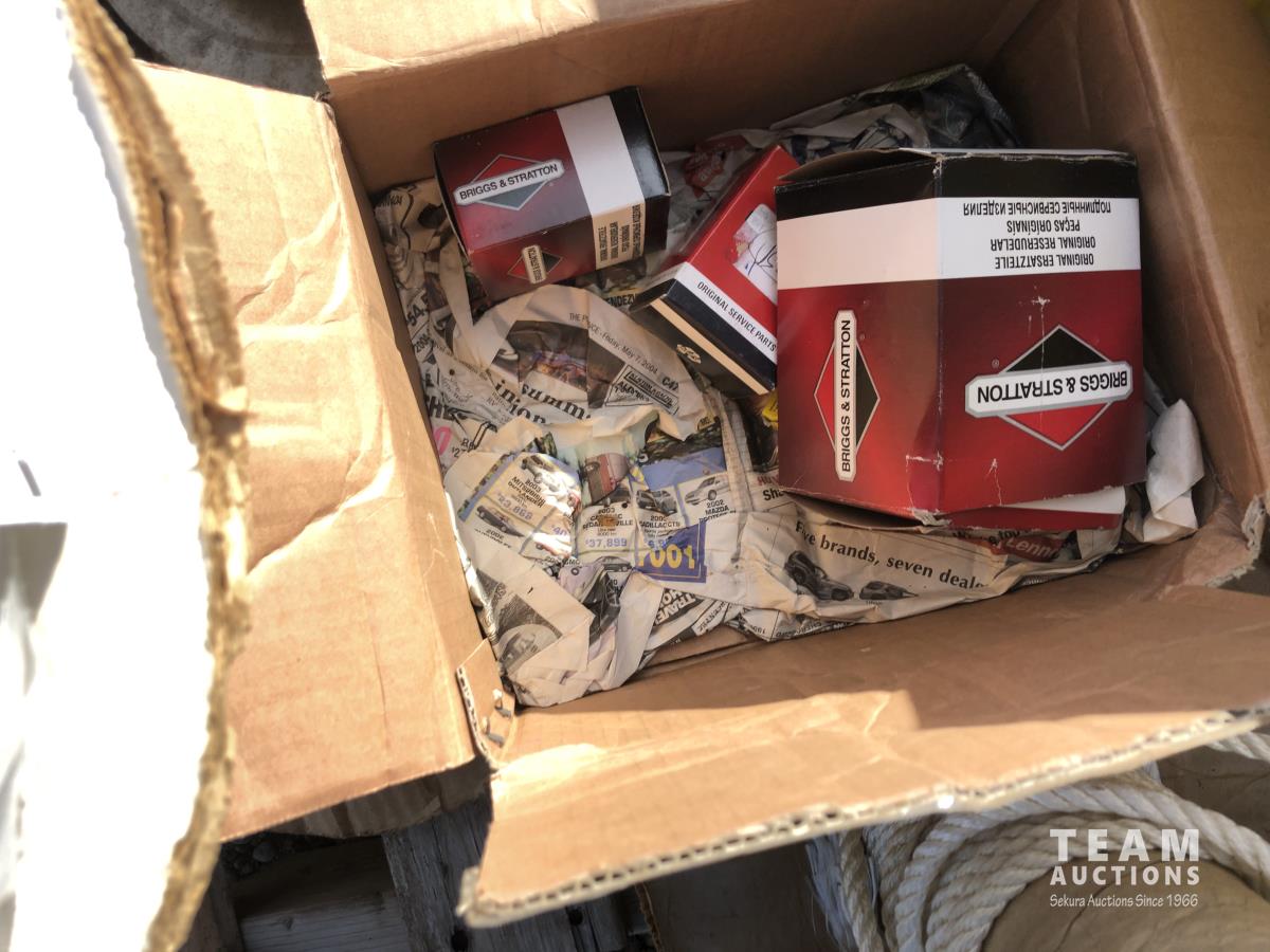 Oil filters, rope, fan belts, water pump, alternator