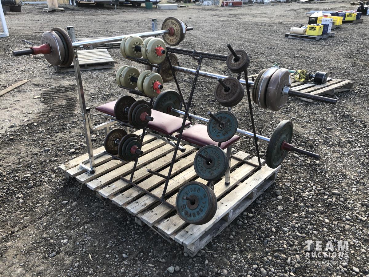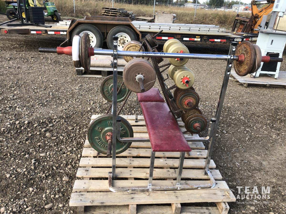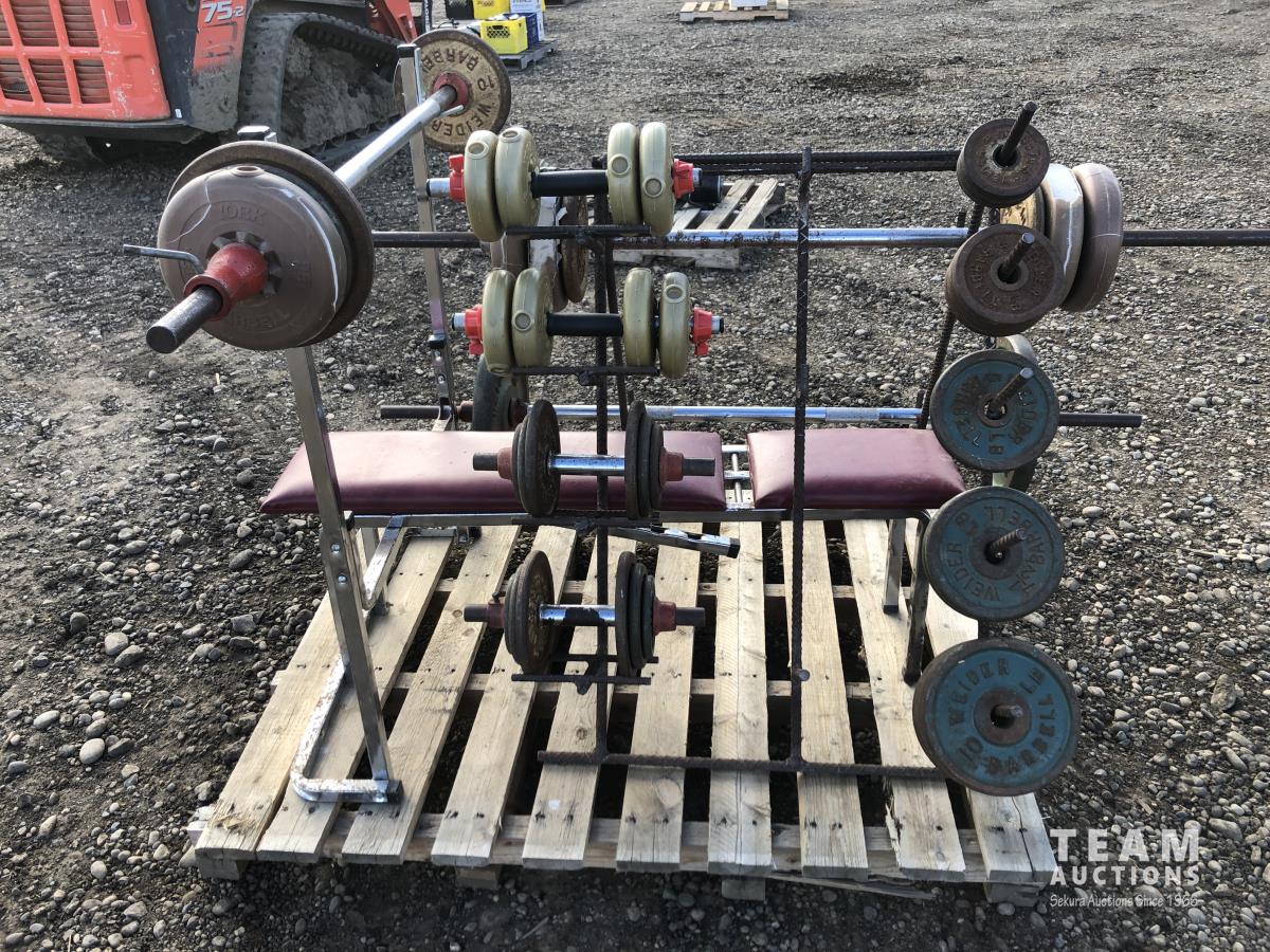 Weight bench, bar, weights & stand