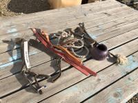 Handmade halter, lead rope, whip, bell boots, martin gale, breast collar, wooden stirrups, 1 inch x 18 inch rein grips