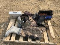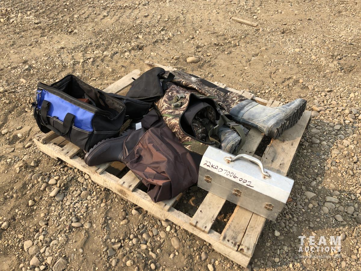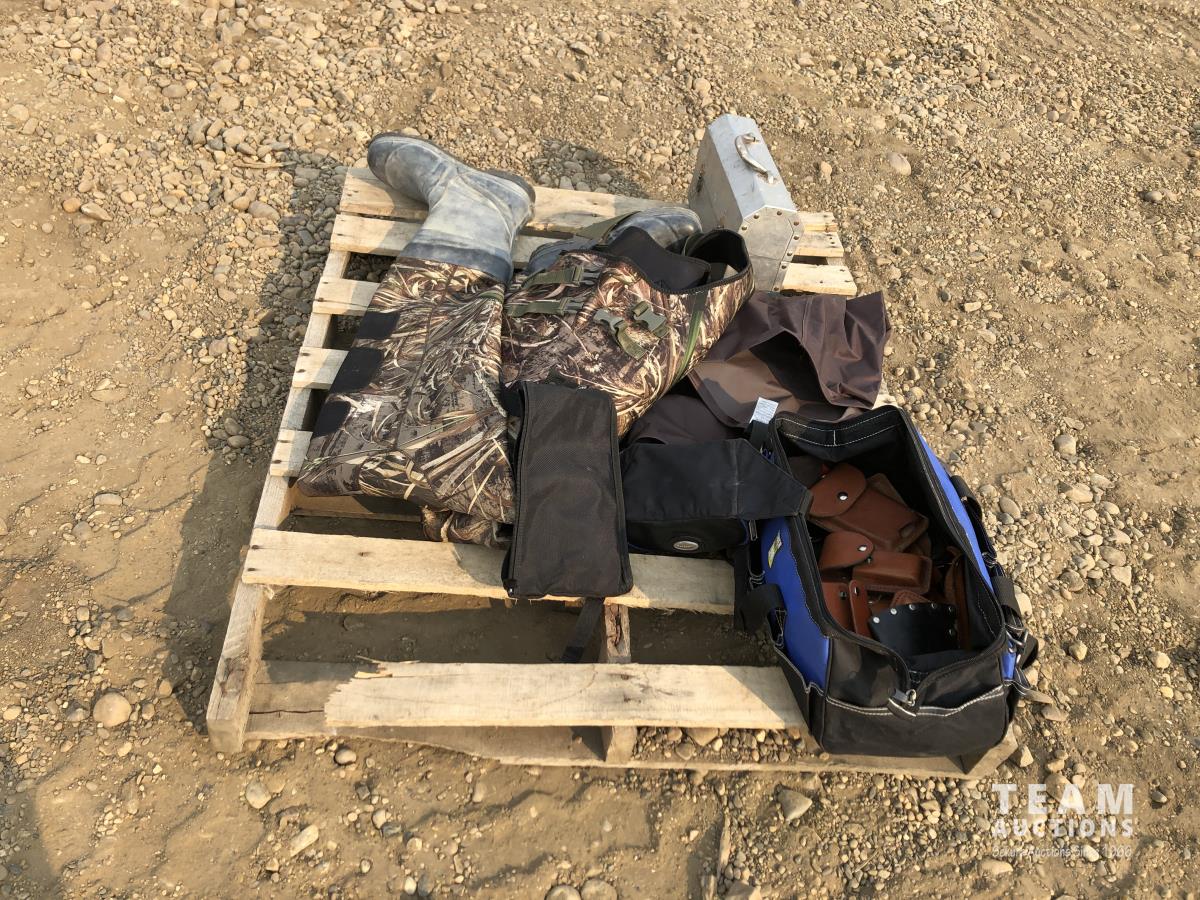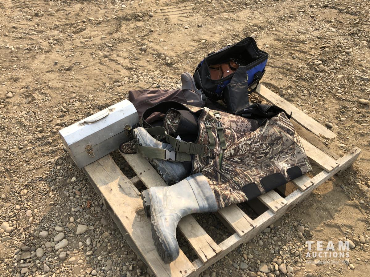 Size 13 chest waders, miscellaneous knife holders, size 12 leg waders